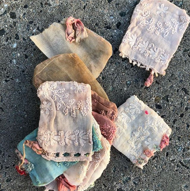 使用している糸や、布、ビーズは彼女の友人の家族の遺品整理の時にいただいたり、