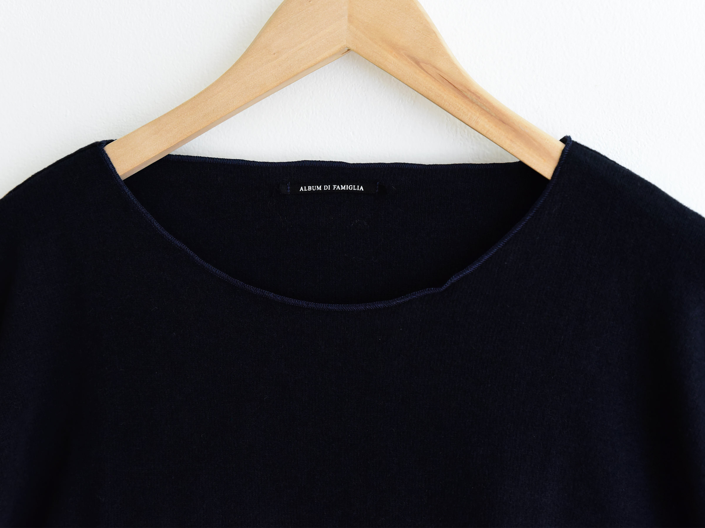 やわらかく伸縮性のあるコットン混ジャージーで仕立てた、Album di Famiglia(アルバム・ディ・ファミリア)の定番プルオーバー。