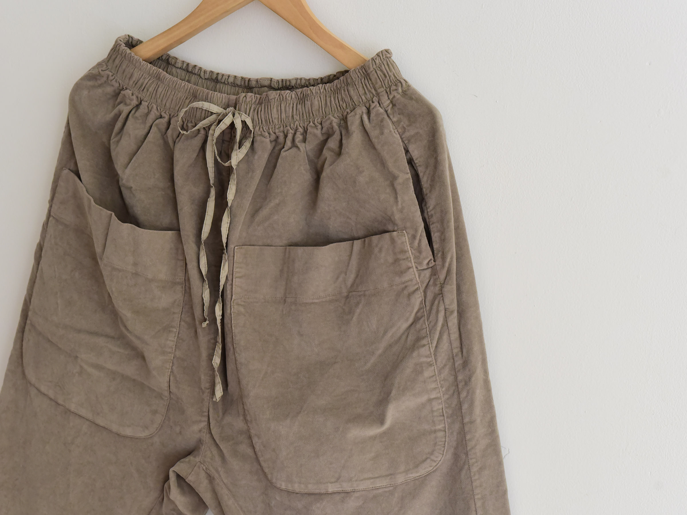※フロントに大きなポケットが 2 つと、サイドにさらに 2 つのポケットが付いたベルベット パンツです。