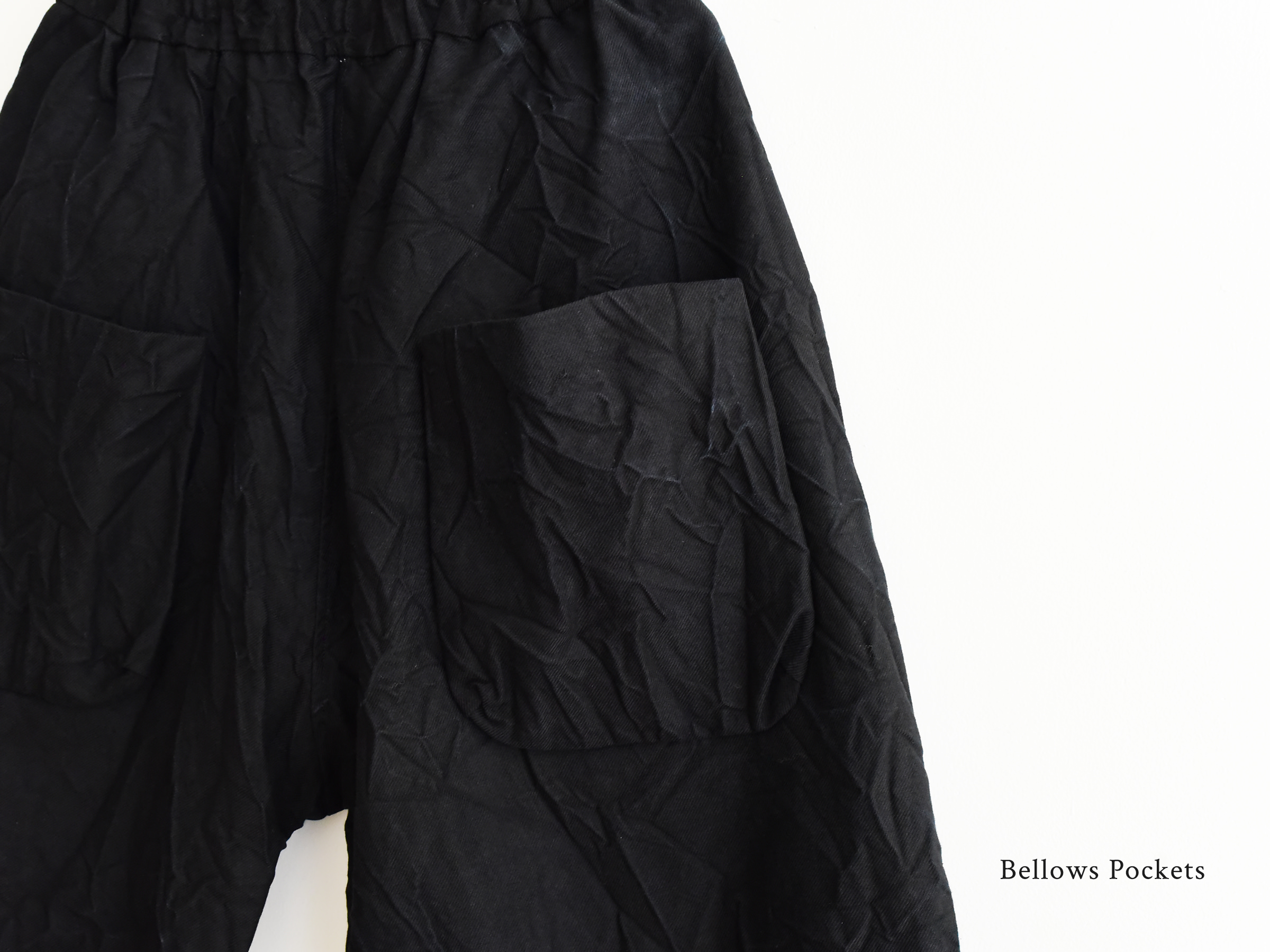 サイズ:M – ウエスト(ゴム・リボン付き)約71~79cm、股上 約43cm、丈 約84cm、裾幅 約33cm