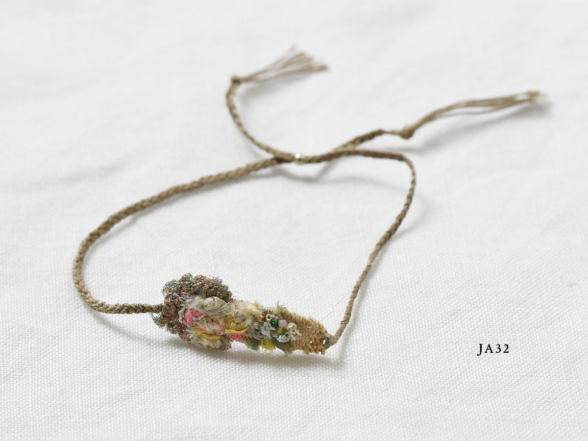 ビンテージの布やベネチアンビーズ、天然石などの天然のパーツ使用しているため、若干の傷や汚れなどがあるものもありますが、商品の個性であり、不良品ではありません。使われているパーツは全てとてもデリケートですので、濡らさないようお取り扱いには十分ご注意ください。