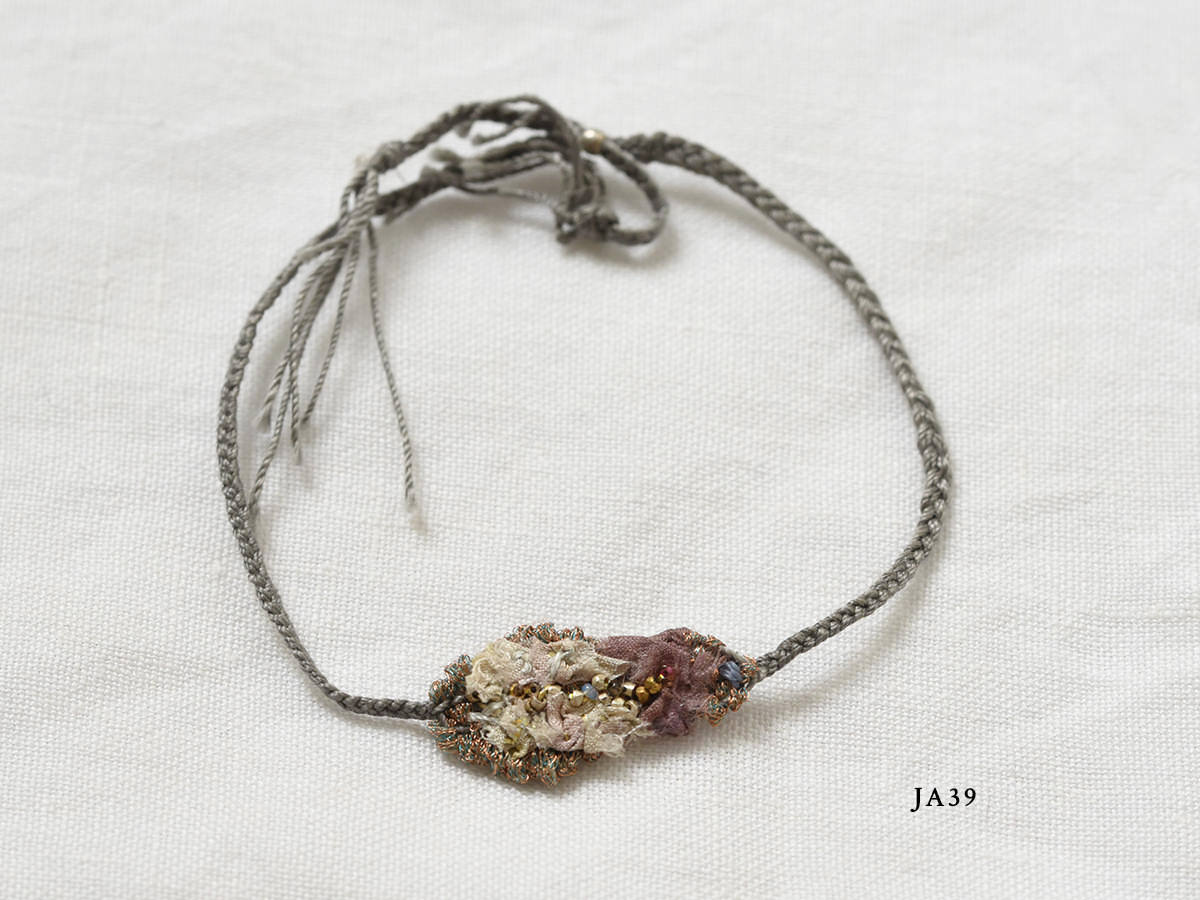 ビンテージの布やベネチアンビーズ、天然石などの天然のパーツ使用しているため、若干の傷や汚れなどがあるものもありますが、商品の個性であり、不良品ではありません。使われているパーツは全てとてもデリケートですので、濡らさないようお取り扱いには十分ご注意ください。
