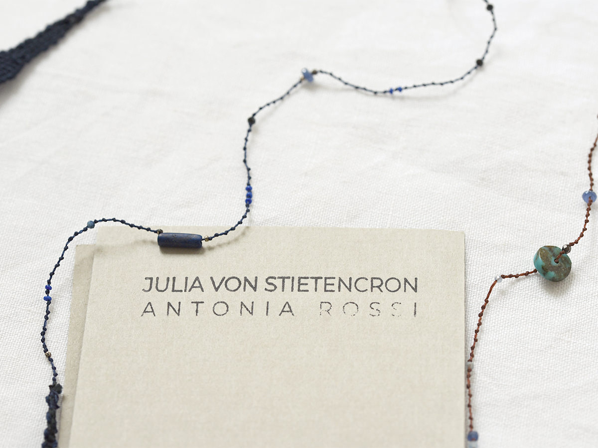 Antonia Rossi(アントニア・ロッシ)イタリアのボローニャを拠点に国際的に活躍するアーティストです。作品はすべてハンドメイドで、他にはないユニークなペイントパターンが特徴です。アントニア・ロッシの作品には、ヴィンテージの生地やベネチアンビーズを用いた手刺繍のアイテムがあり、どれも個性的で唯一無二の作品となるようデザインされています。ロッシの作品は、繊細な刺繍と、リネン、シルク、ベルベットなどの素材使いが特徴です。