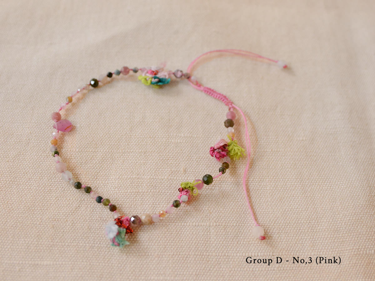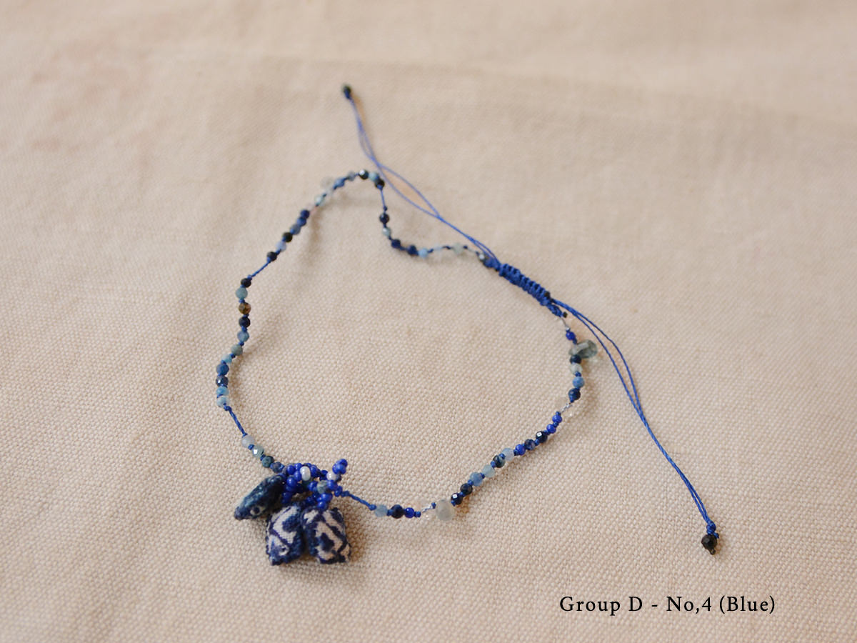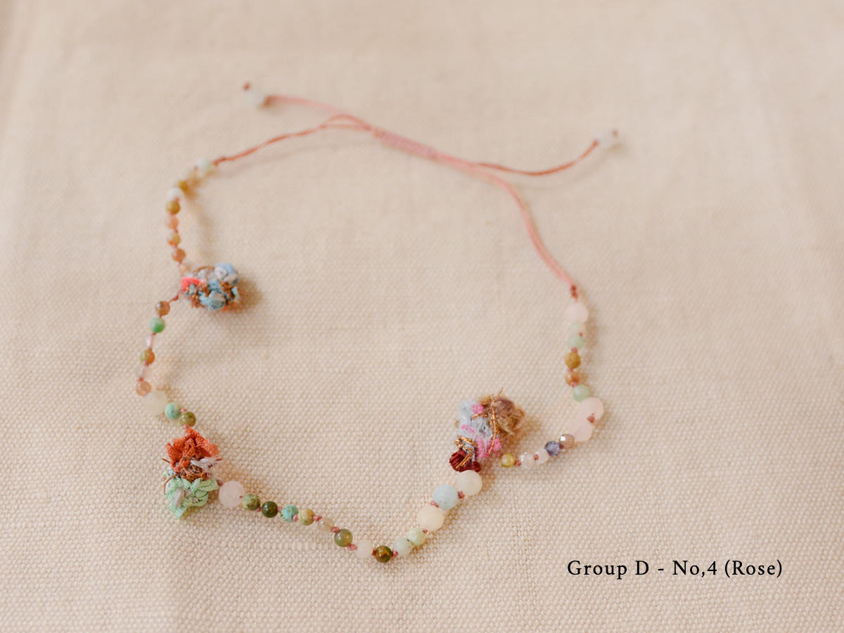 ブレスレットはシルク、リネン、ラミの生地、ベネチアンビーズや天然の半貴石などを使い作られています。