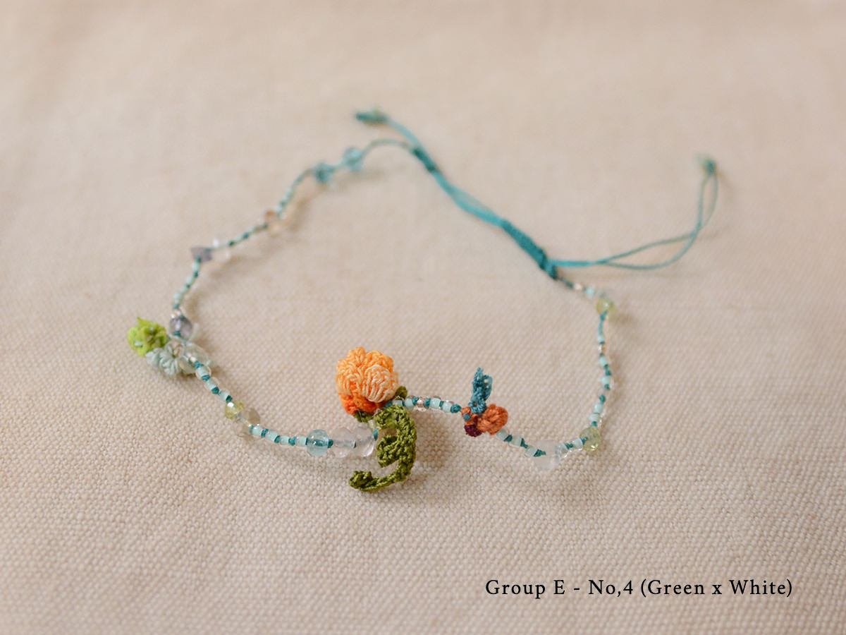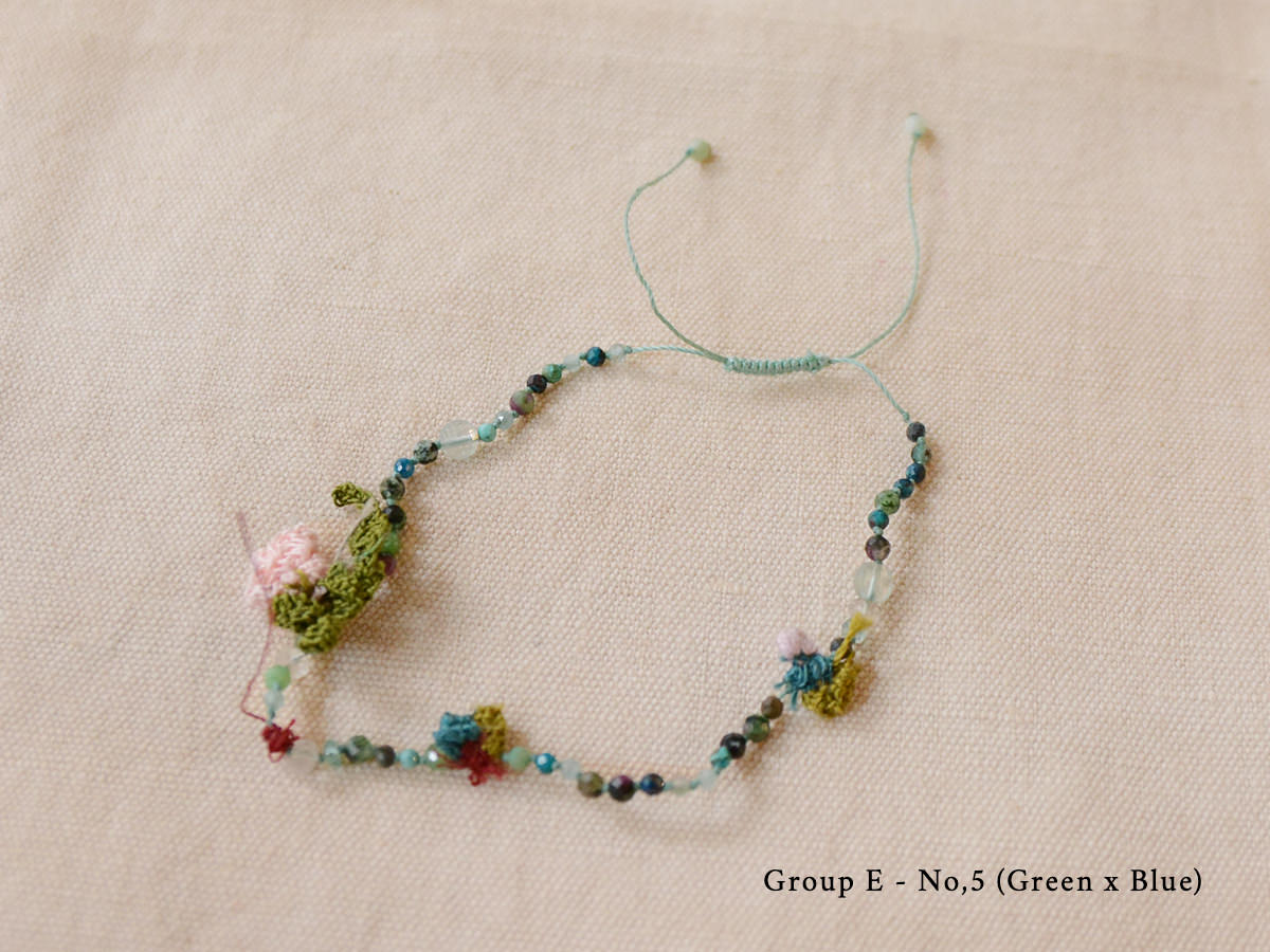 ブレスレットはシルク、リネン、ラミの生地、ベネチアンビーズや天然の半貴石などを使い作られています。
