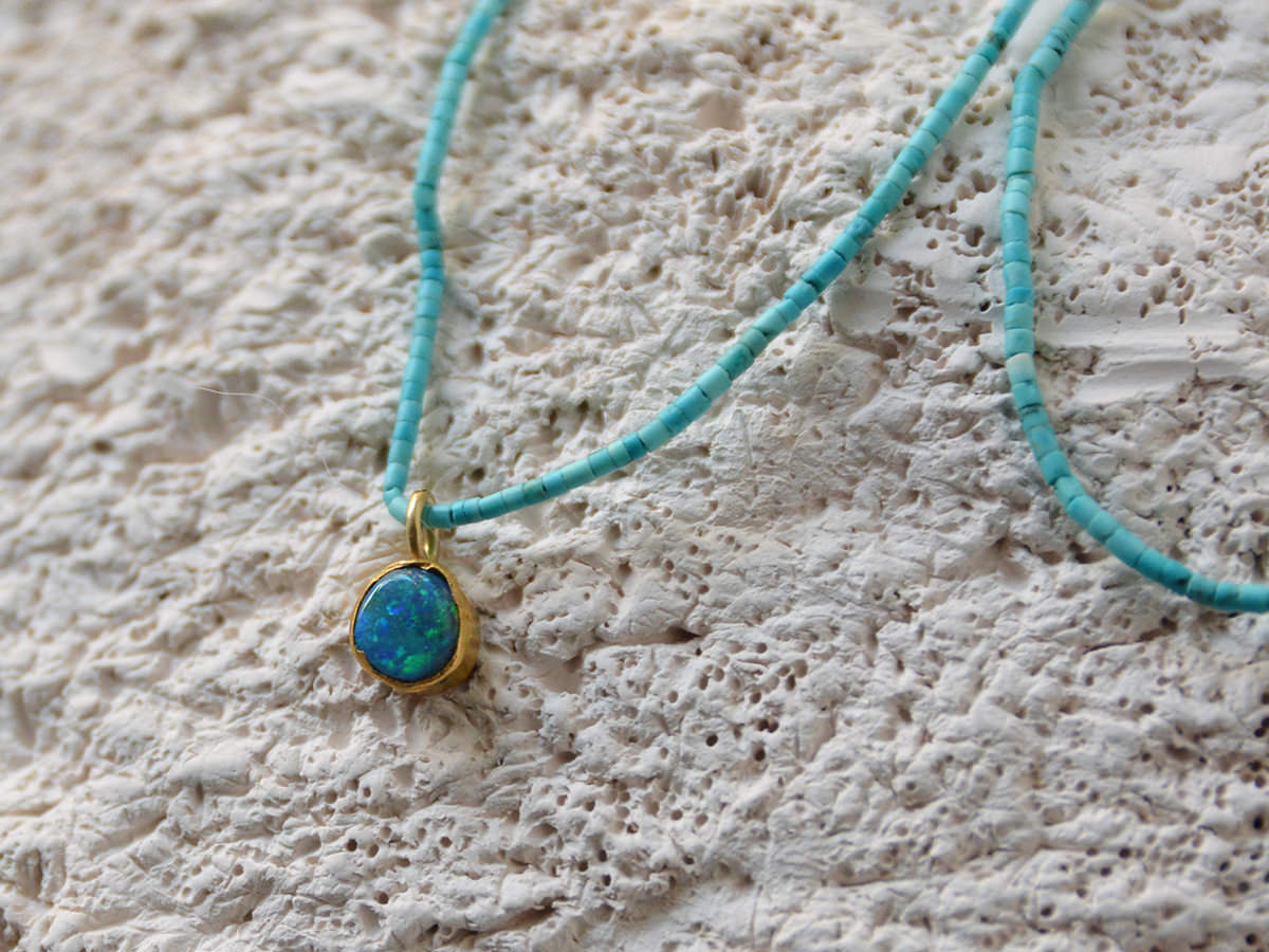 素材:ペンダント – オーストラリアオパール(ブルー:約5-7 ㎜)(ホワイト:約5 ㎜)