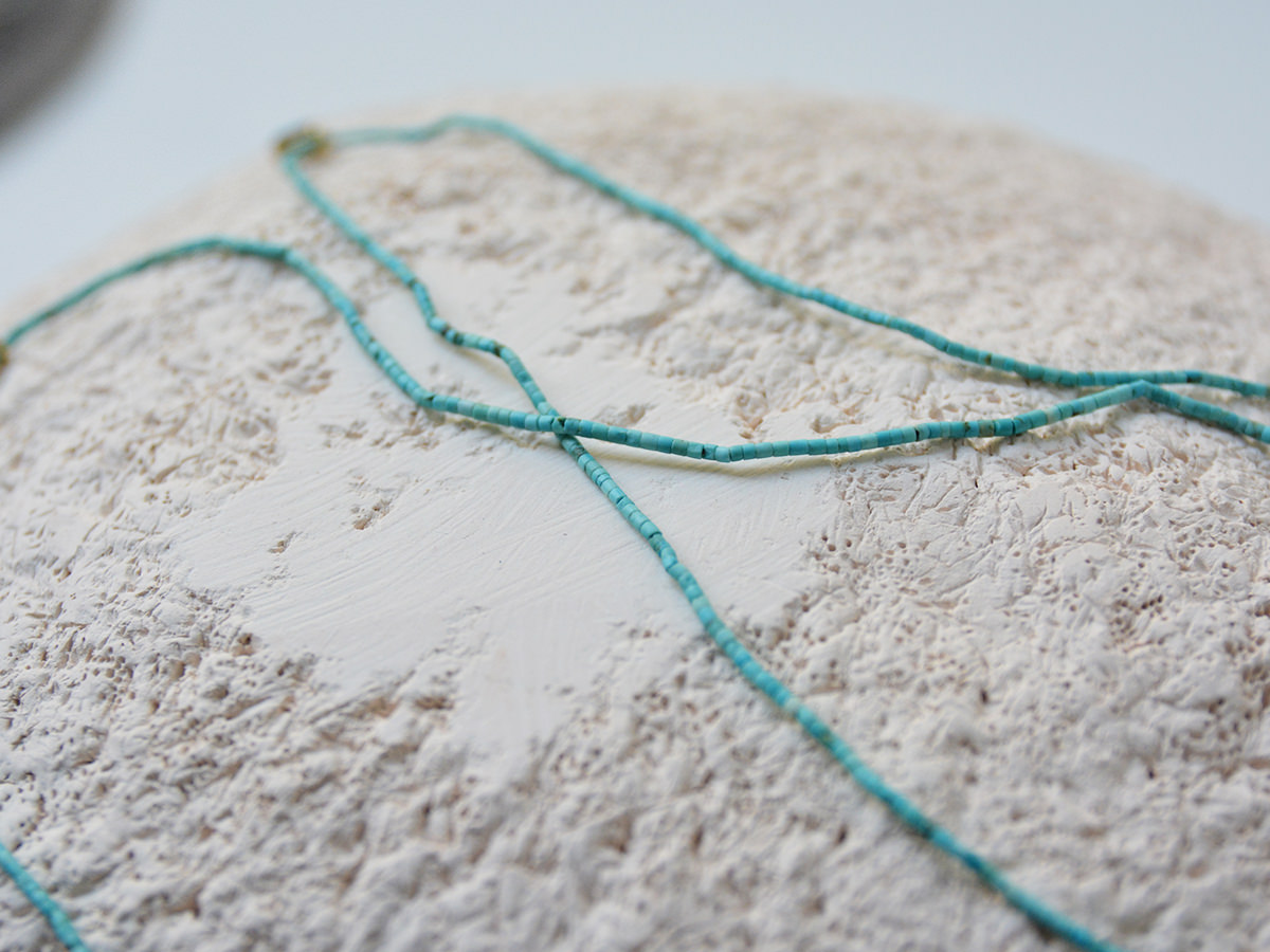 アントニア・ロッシの作品には、ヴィンテージの生地やベネチアンビーズを用いた手刺繍のアイテムがあり、