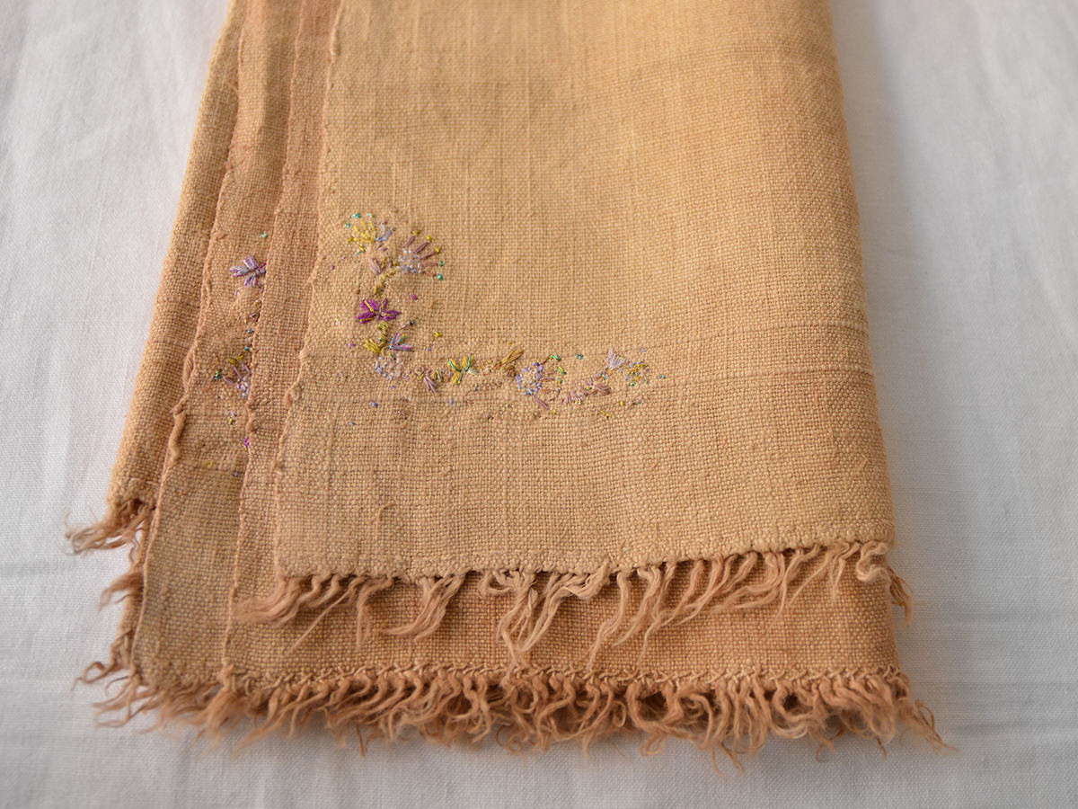 ヴィンテージナプキンはシミや傷などがあるものもございますが、それぞれの個性であることをご了承ください。 使用されている素材や生地はとてもデリケートなものになりますので、お取り扱いには十分ご注意ください。