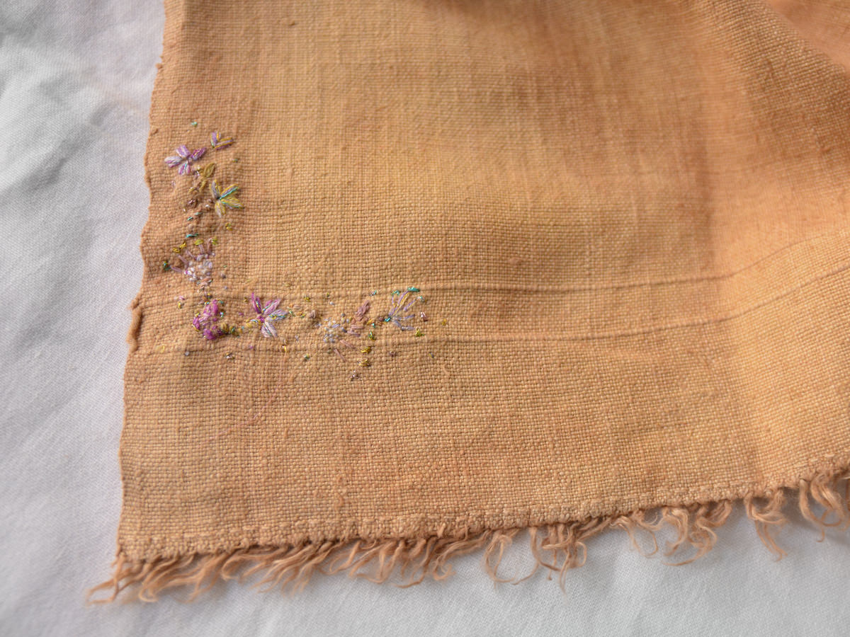 イタリアのボローニャで活動するアーティスト、 Antonia Rossi による刺繍入りのヴィンテージリネンナプキンです。