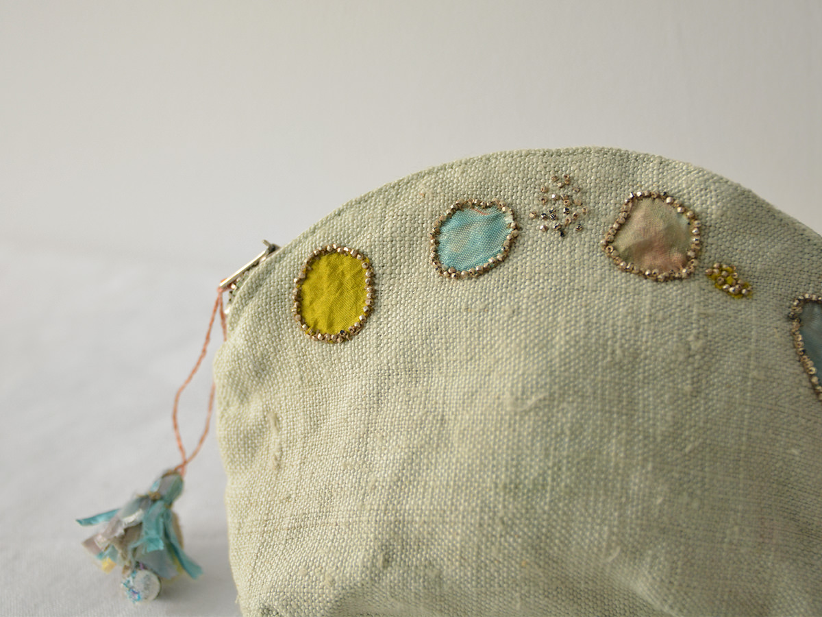 Antonia Rossi, Embroidered Linen Pouch Small with Micro Beads – Group 1 NY