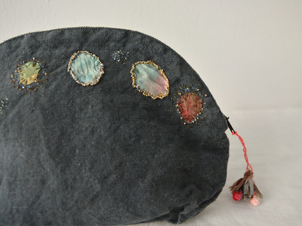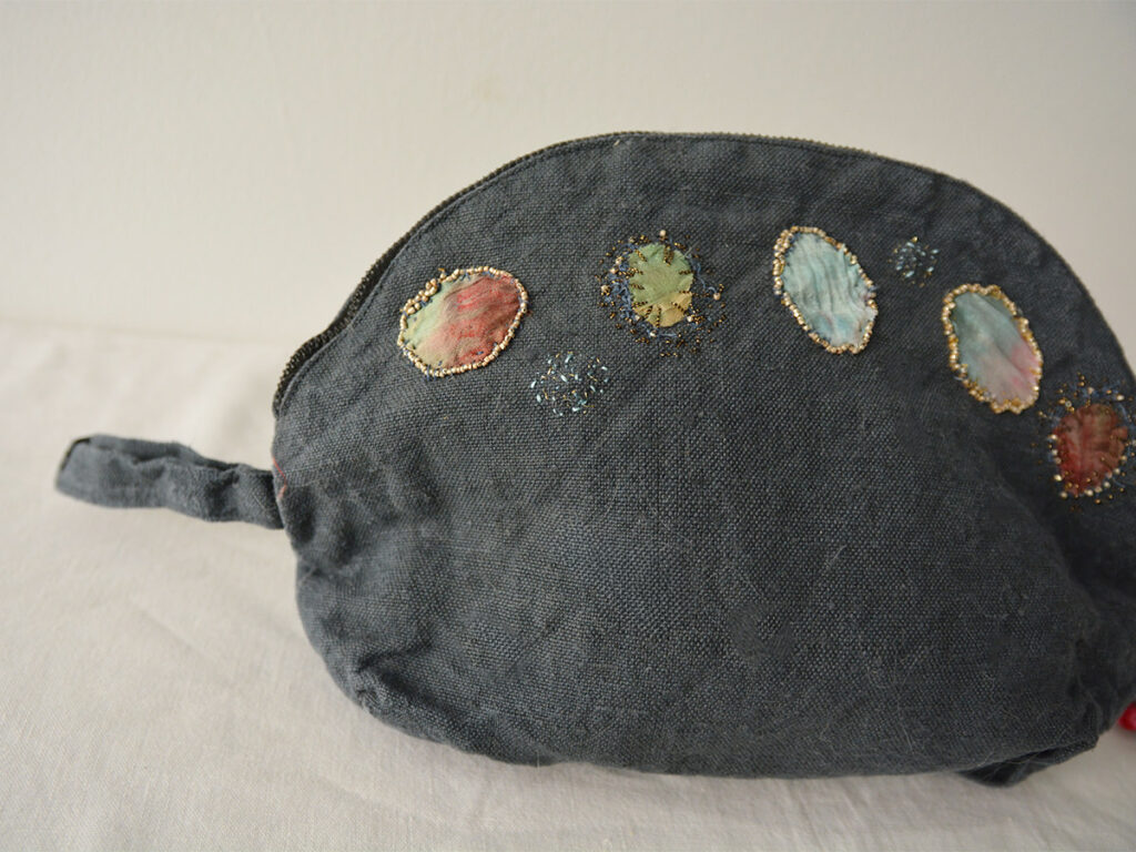 イタリアのボローニャで活動するアーティスト、Antonia Rossi によるハンドメイドで刺繍されたポーチです。