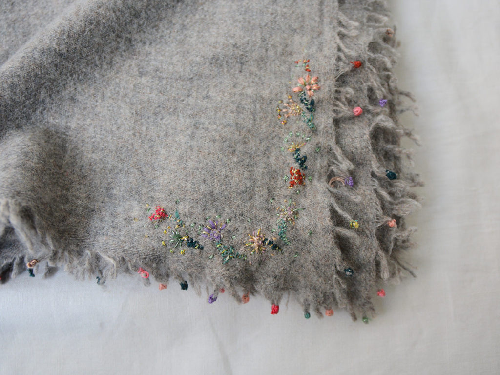 イタリアのボローニャを拠点として活動するアーティスト、Antonia Rossiによる手刺繍の入ったスカーフです。