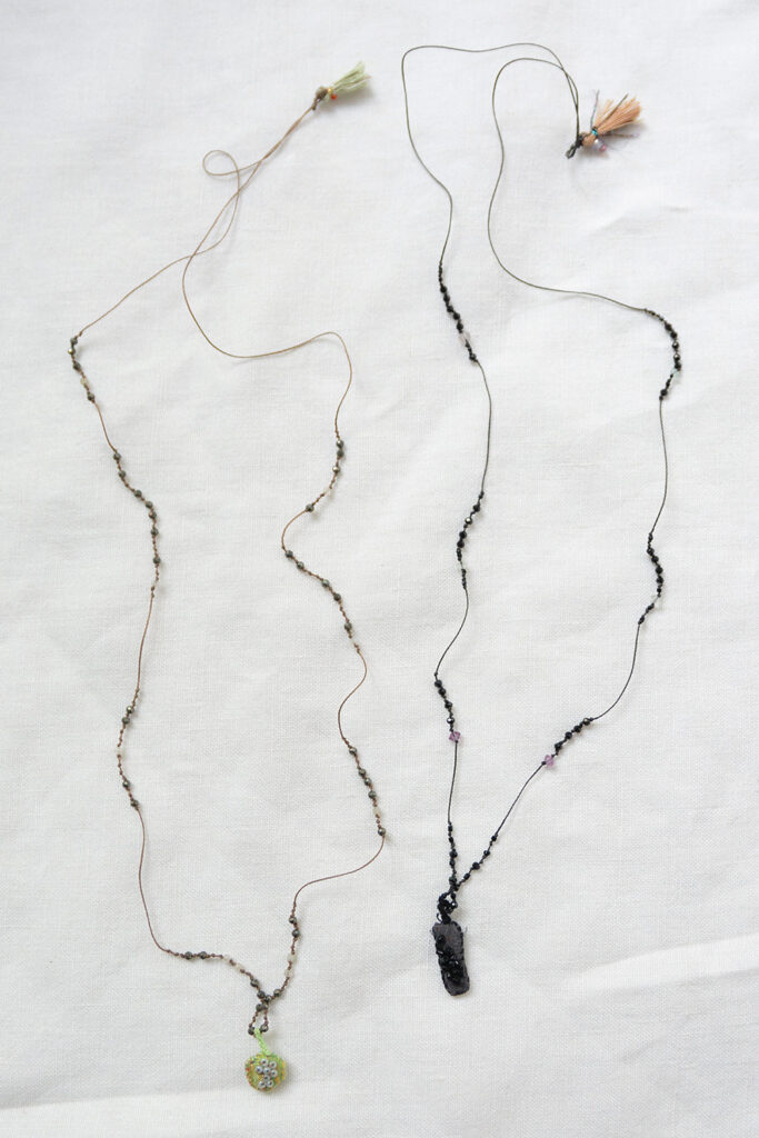 Maribel Bisbal / マリベル・ビスバル, Woven Beaded Necklace – Slate Blue x Pink