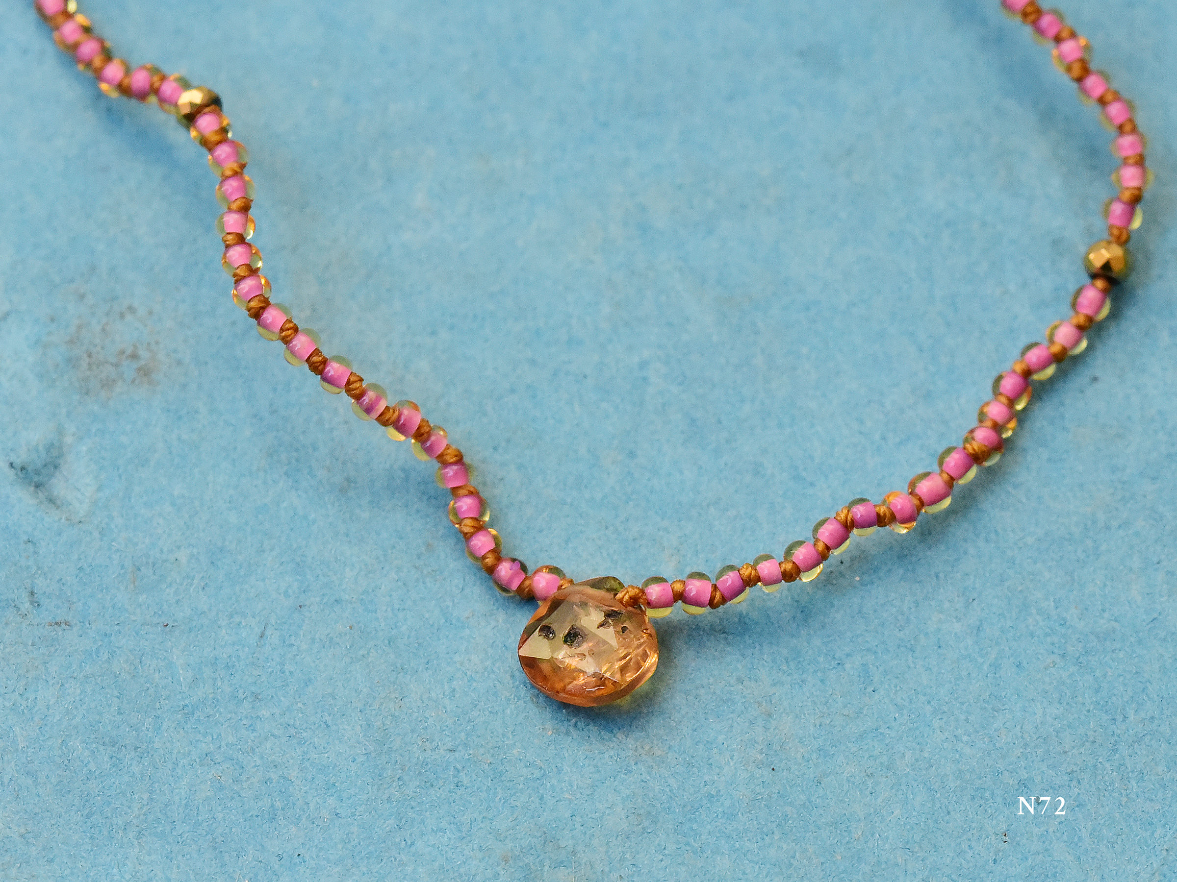 Antonia Rossi, Venetian Micro Beads Necklace with a Stone – N72 Blue and Pink
