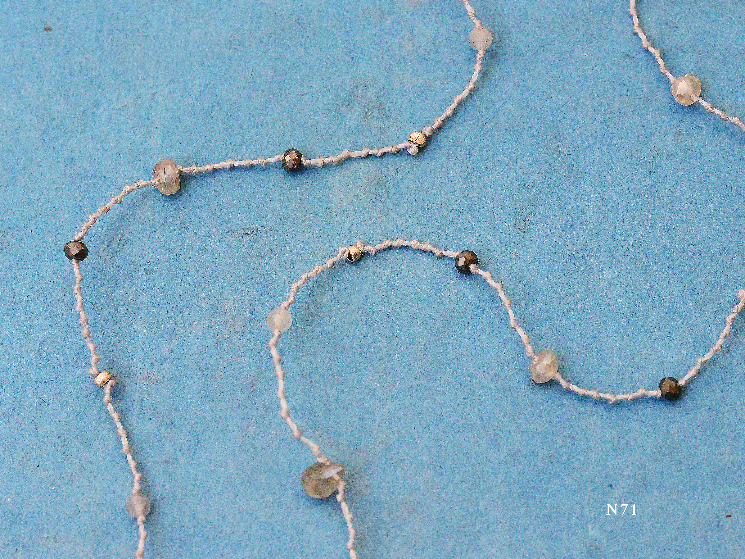 ビンテージの布やベネチアンビーズ、天然石などの天然のパーツ使用しているため、若干の傷や汚れなどがあるものもありますが、商品の個性であり、不良品ではありません。使われているパーツはとてもデリケートですので、濡らさないようお取り扱いには十分ご注意ください。