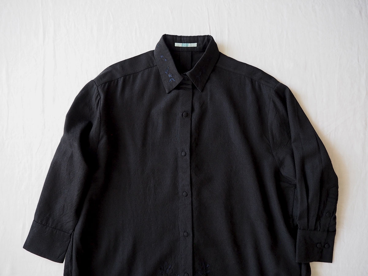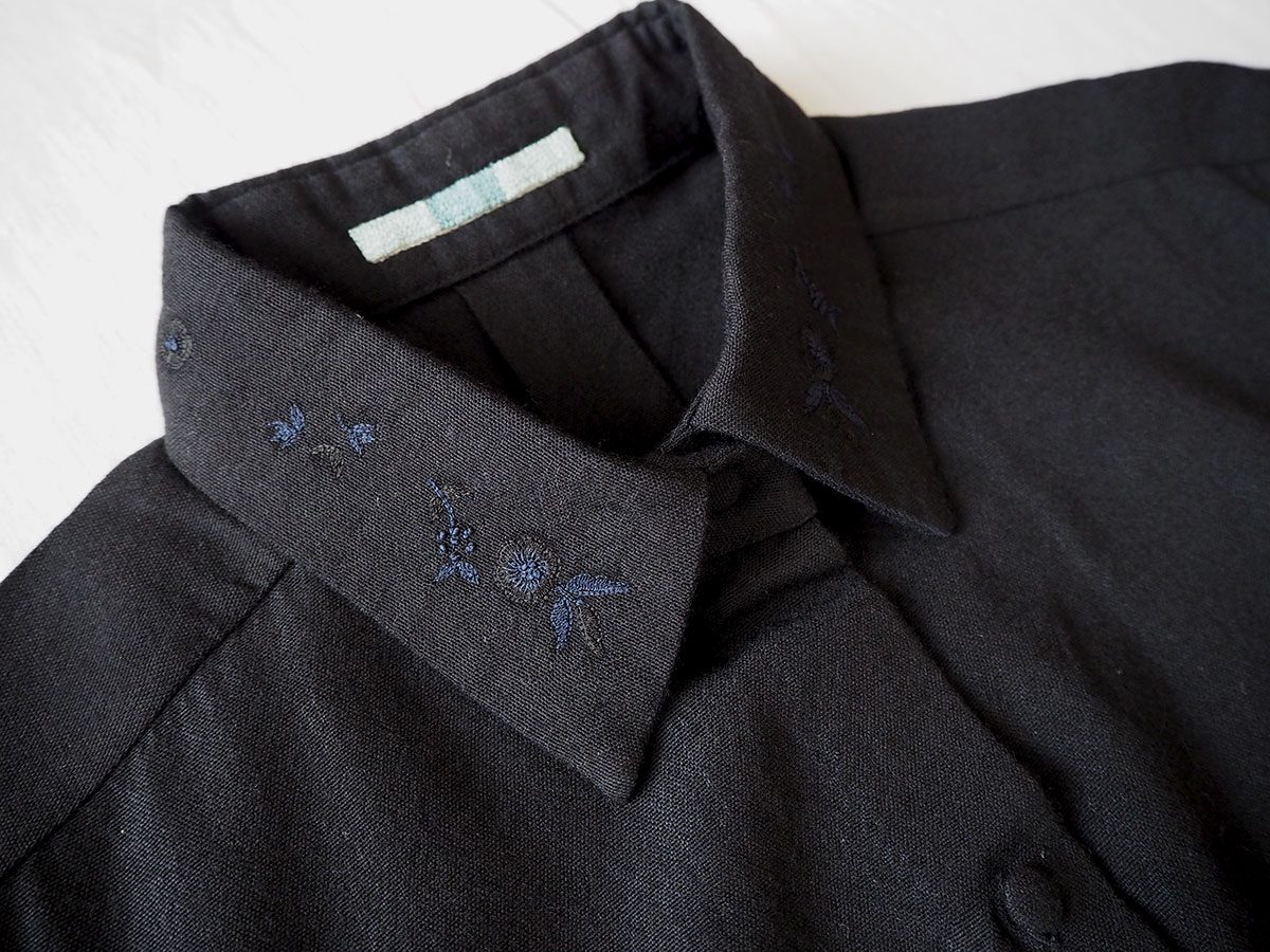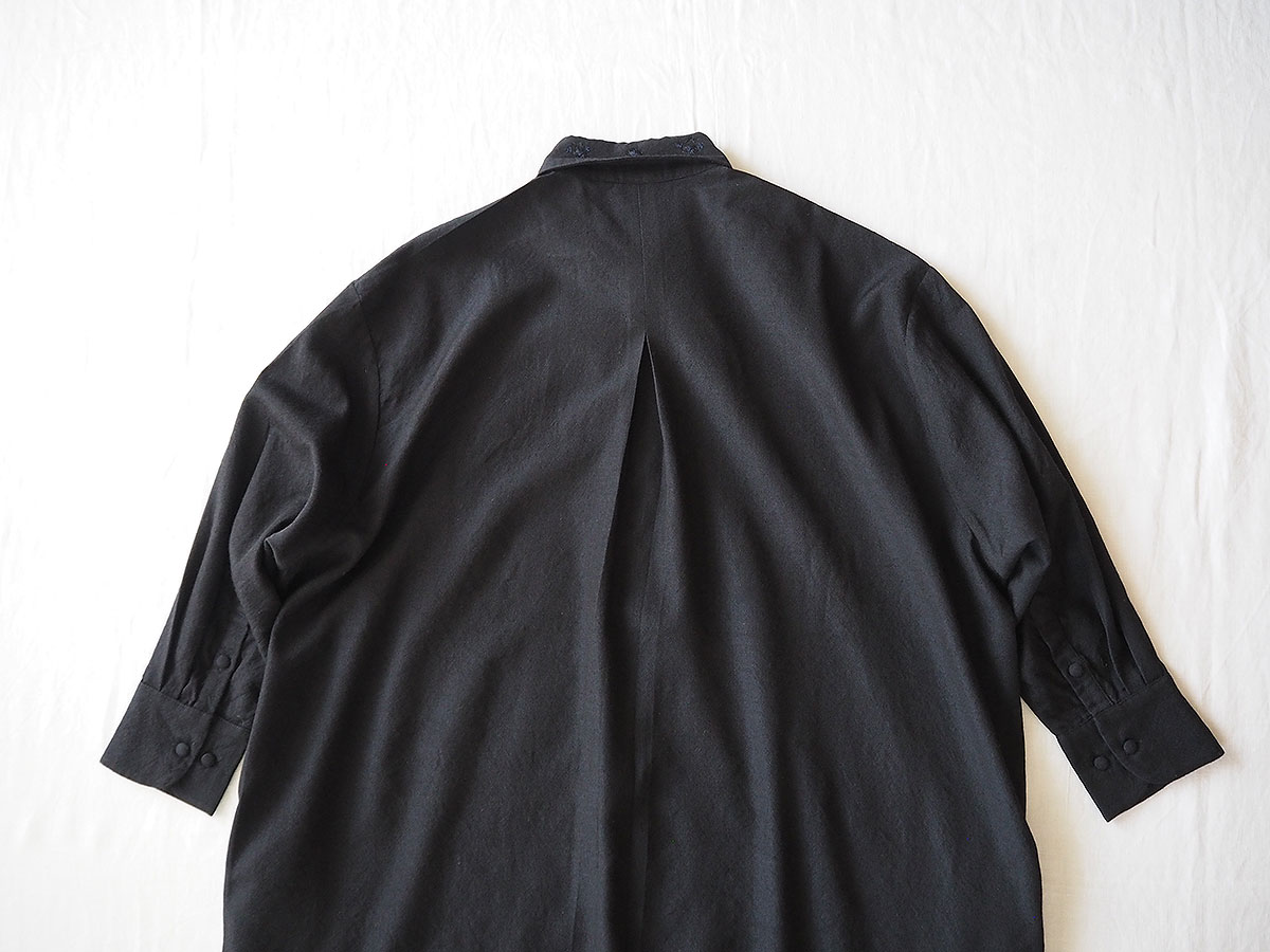 AODRESS / アオドレス, Embroidered Handloom Wool Shirt Dress – Dark Navy