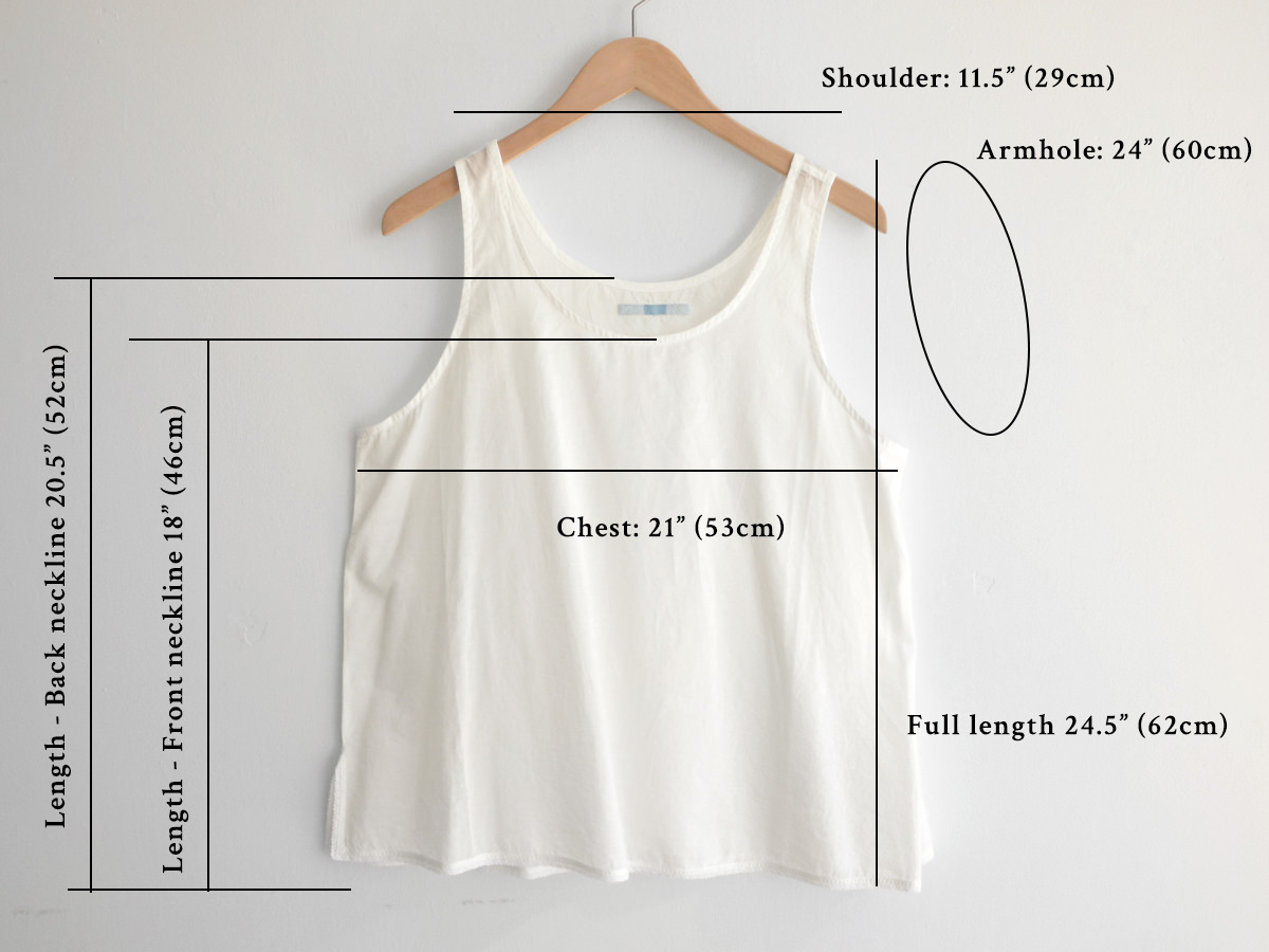 サイズ(タンクトップ): 肩幅29cm, 腕ぐり60cm, 身幅53cm, 着丈62cm