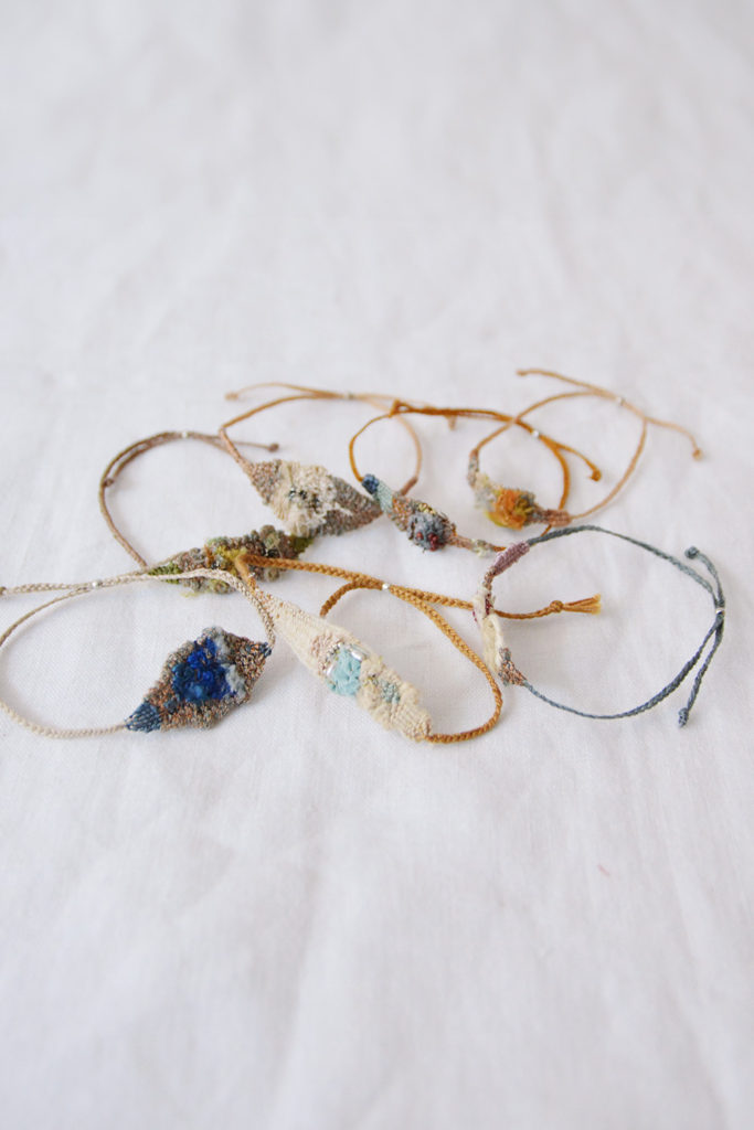 ※シルク、リネン、ラミ、細かなベネチアンビーズを使って作られた手編みのブレスレットです。