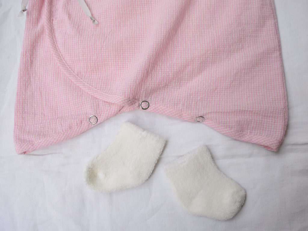 合わせタイプの肌着は新生児にも着させやすい仕様です。