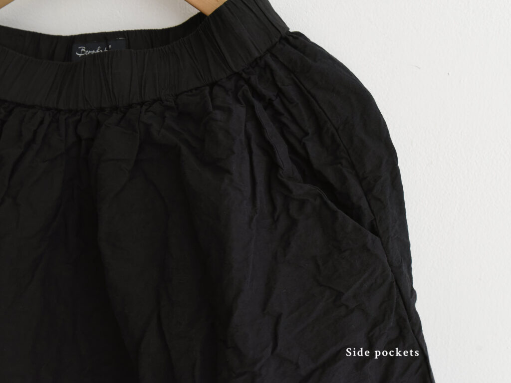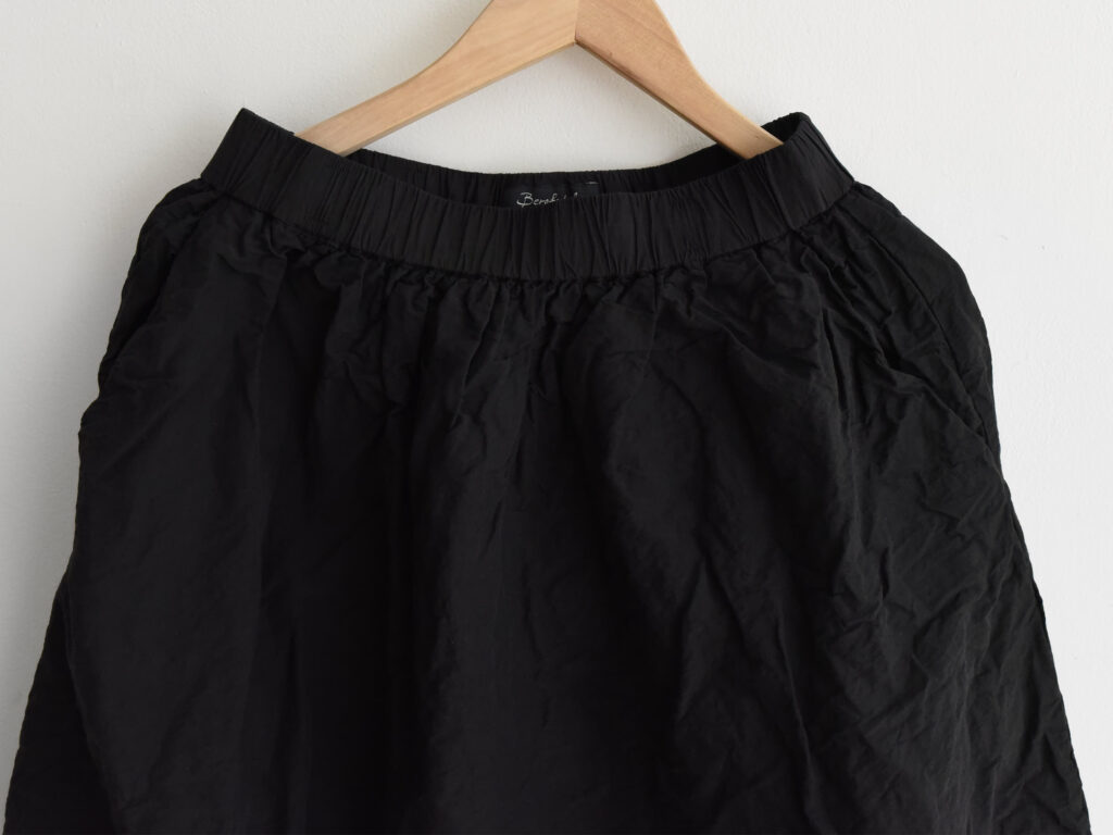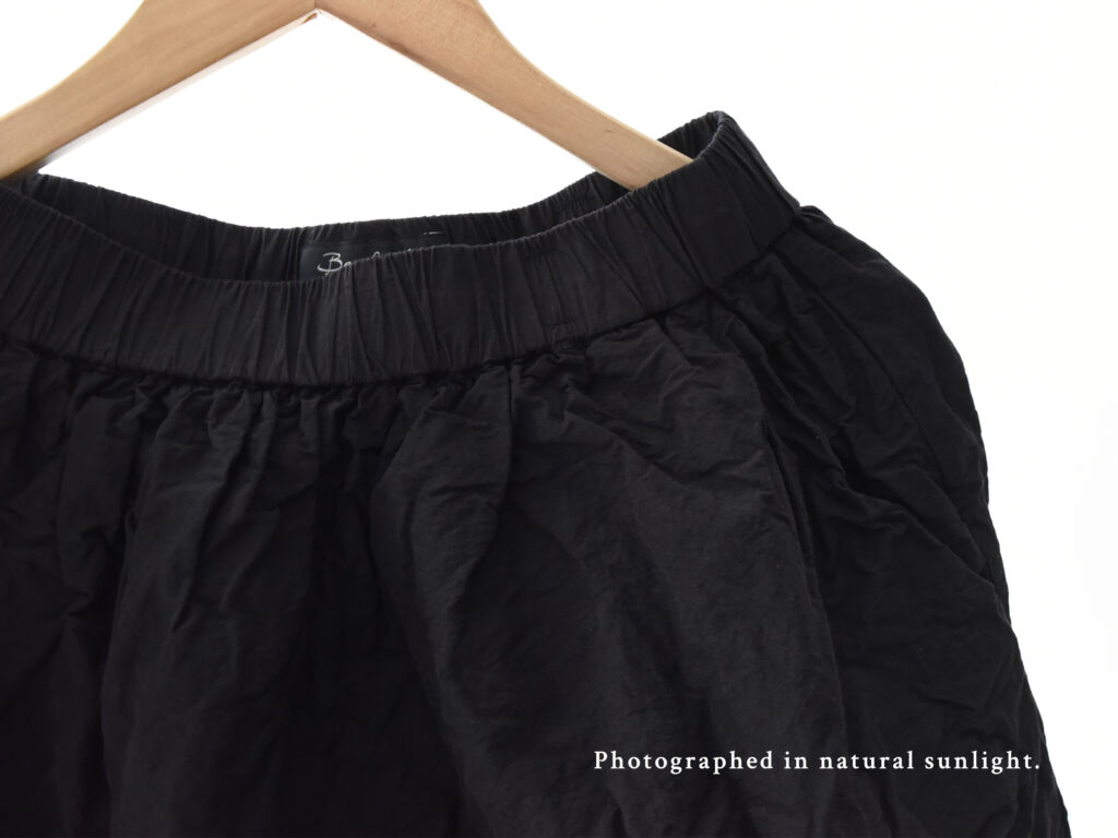 ※Bergfabelのアイビースカートは、軽量なコットンとリネンの混紡素材を使用し、イタリアで製造されています。伸縮性のあるウエストバンドと柔らかなギャザーシルエットが特徴で、ブラックカラーで着心地が良く、通気性にも優れています。