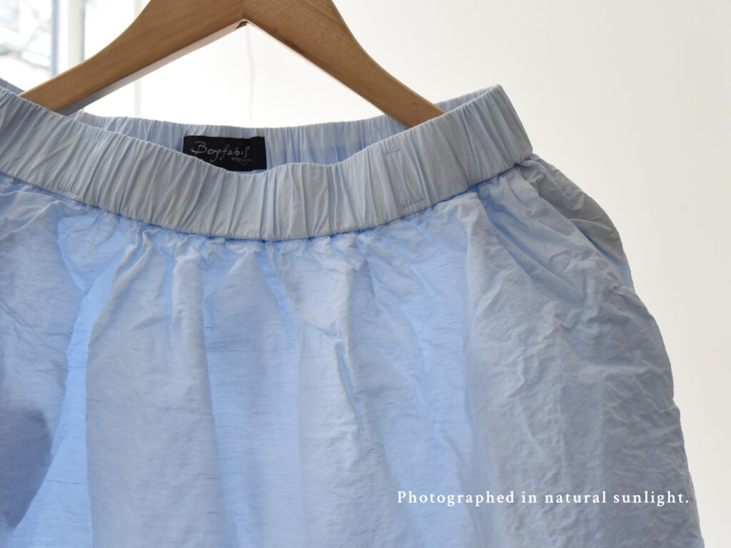 ※Bergfabelのアイビースカートは、軽量なコットンとリネンの混紡素材を使用し、イタリアで製造されています。伸縮性のあるウエストバンドと柔らかなギャザーシルエットが特徴で、ブラックカラーで着心地が良く、通気性にも優れています。
