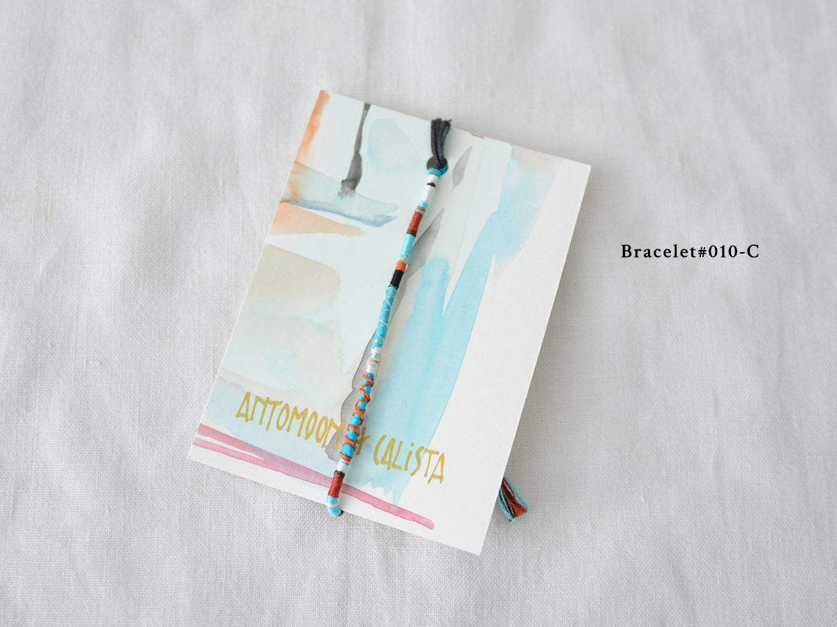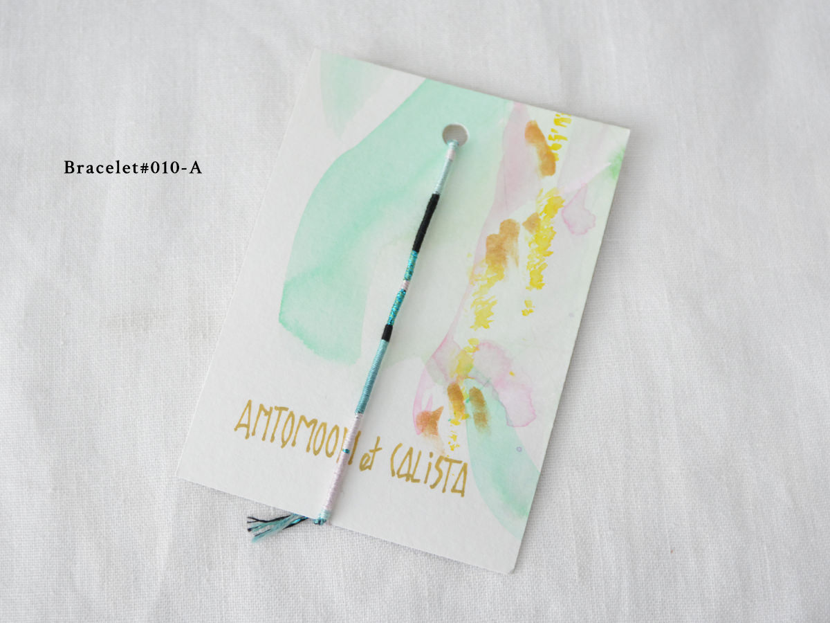 ブレスレットは、細く繊細な糸を使用して丁寧に手作りされており、裏側の水彩画はそれぞれ手書きで描かれているため唯一無二の作品になっています。