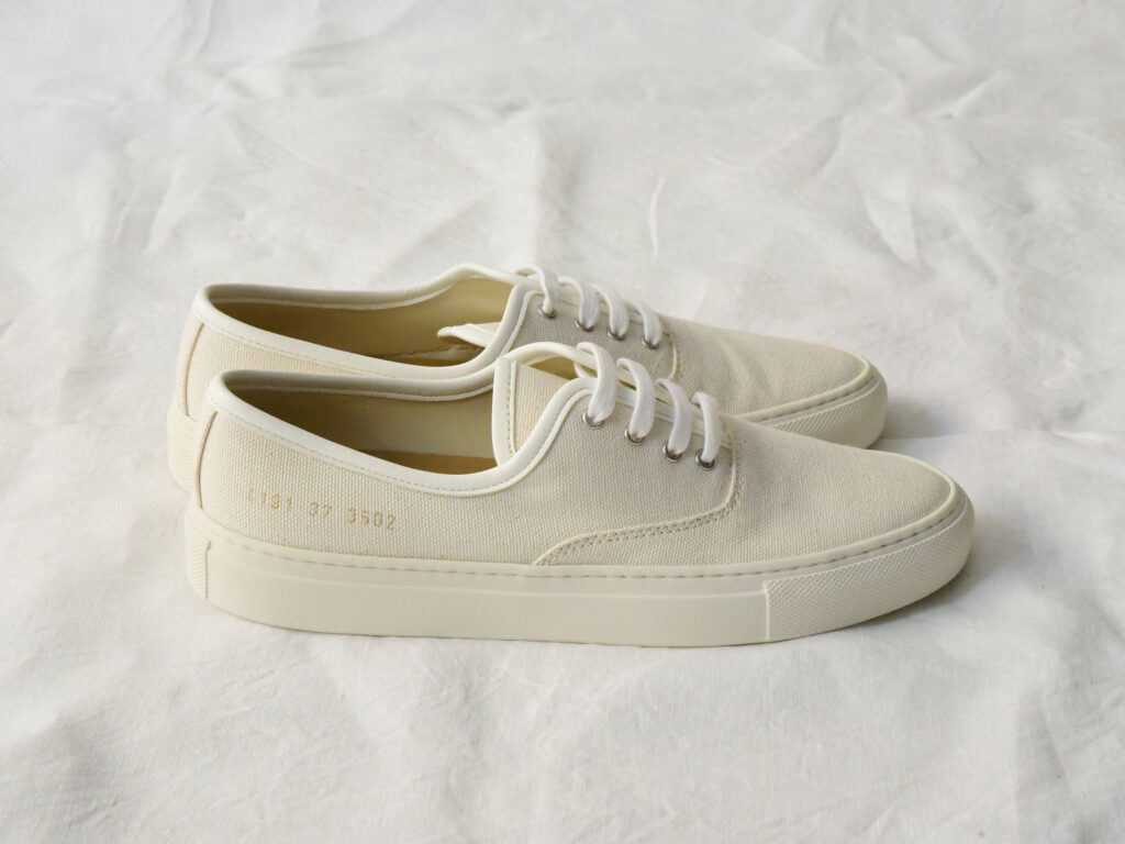 Common Projectsの創業者、Prathan Poopat と Flavio Girolami は、2004 年にニューヨークでブランドをスタート。 同ブランドは、スニーカーカルチャーのストリート感覚とイタリアの手縫い品質の縫製をあわせ持ち、