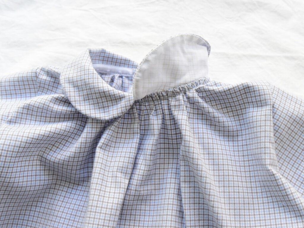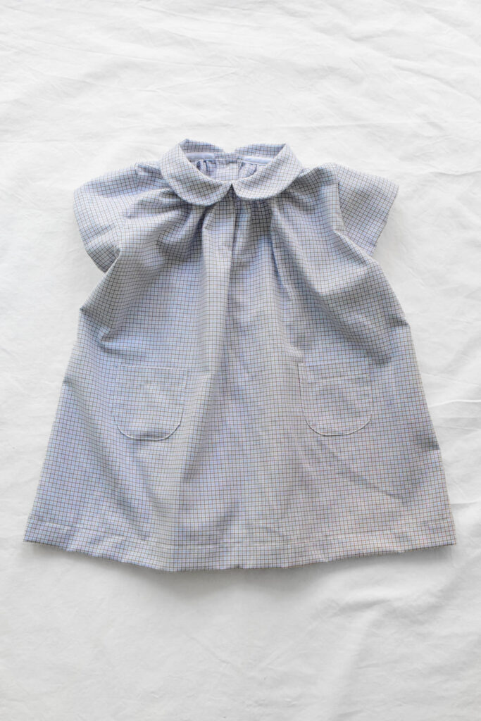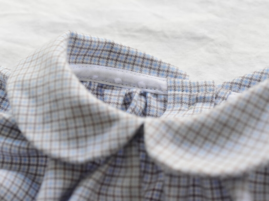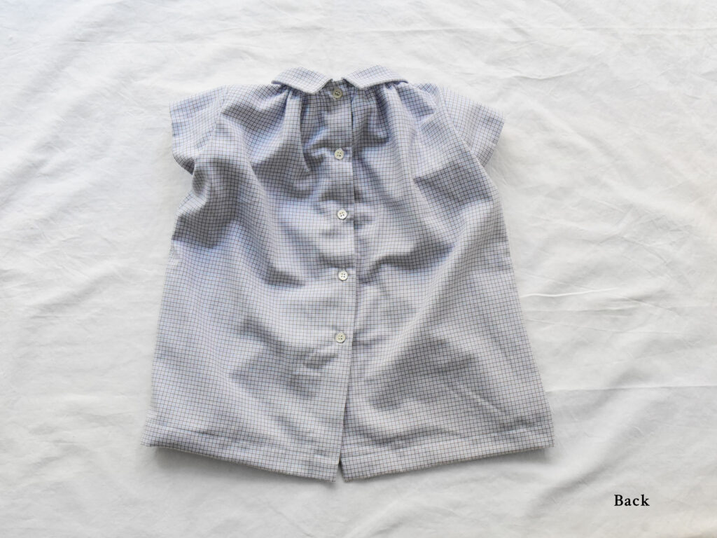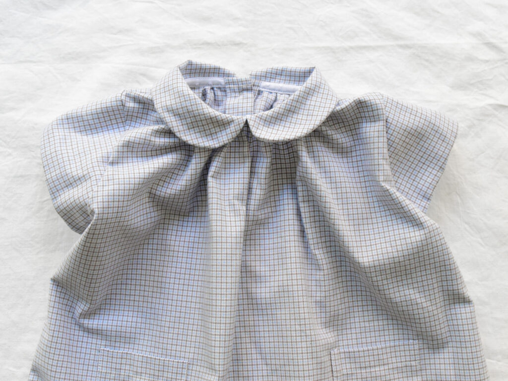 ※襟のパイピングはドット柄のホワイトメッシュでトリミングされています。フロントポケットが2つ。後ろボタン留め。