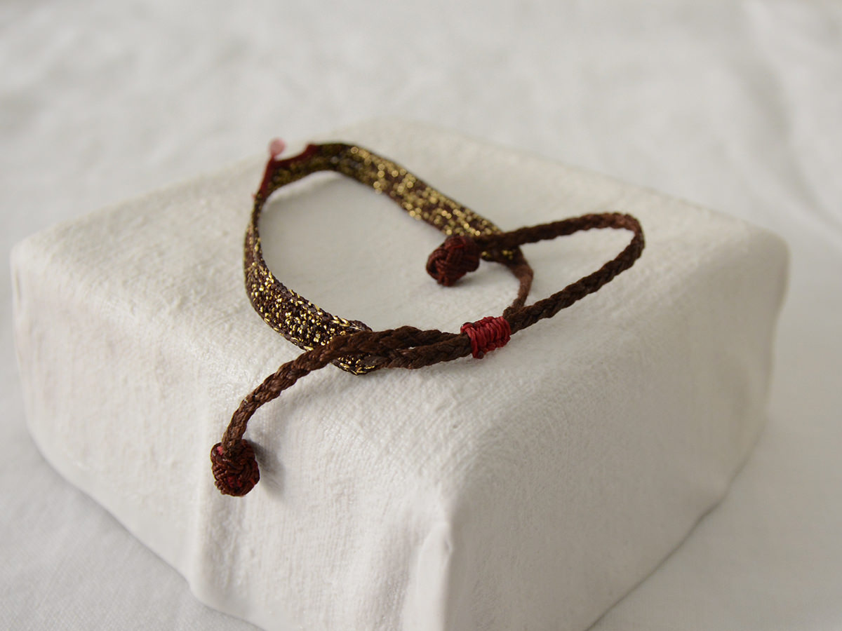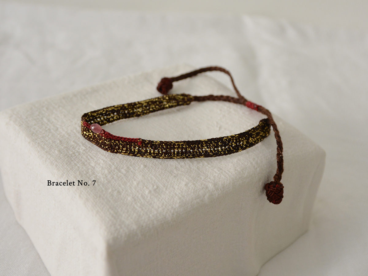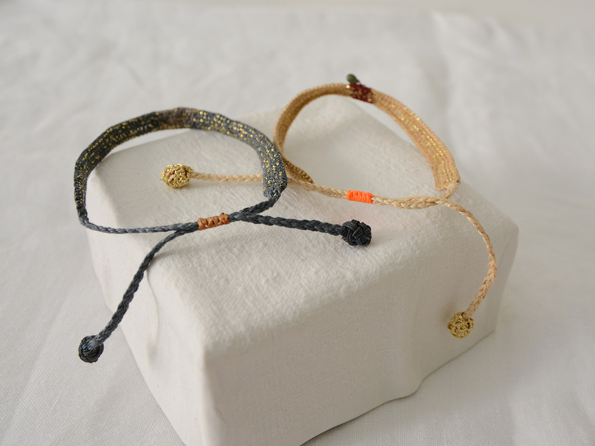 ブレスレットは、シルクとトルマリンビーズ入りの金属糸で作られています。