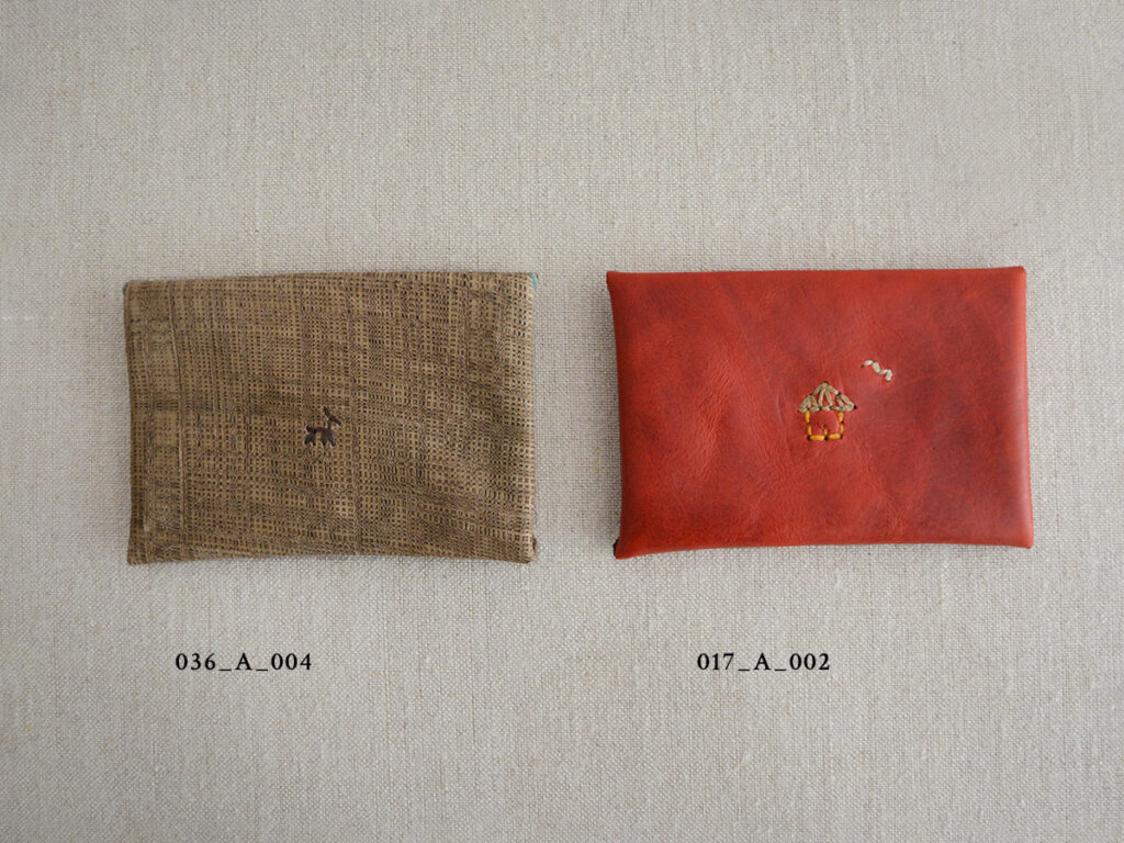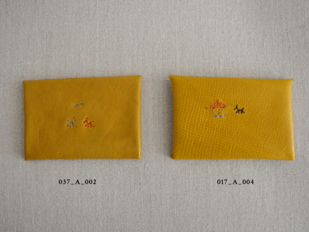 アンリの手によってひと針ひと針丁寧に刺繍されたカードケースは、それぞれが世界にたったひとつの特別な存在です。