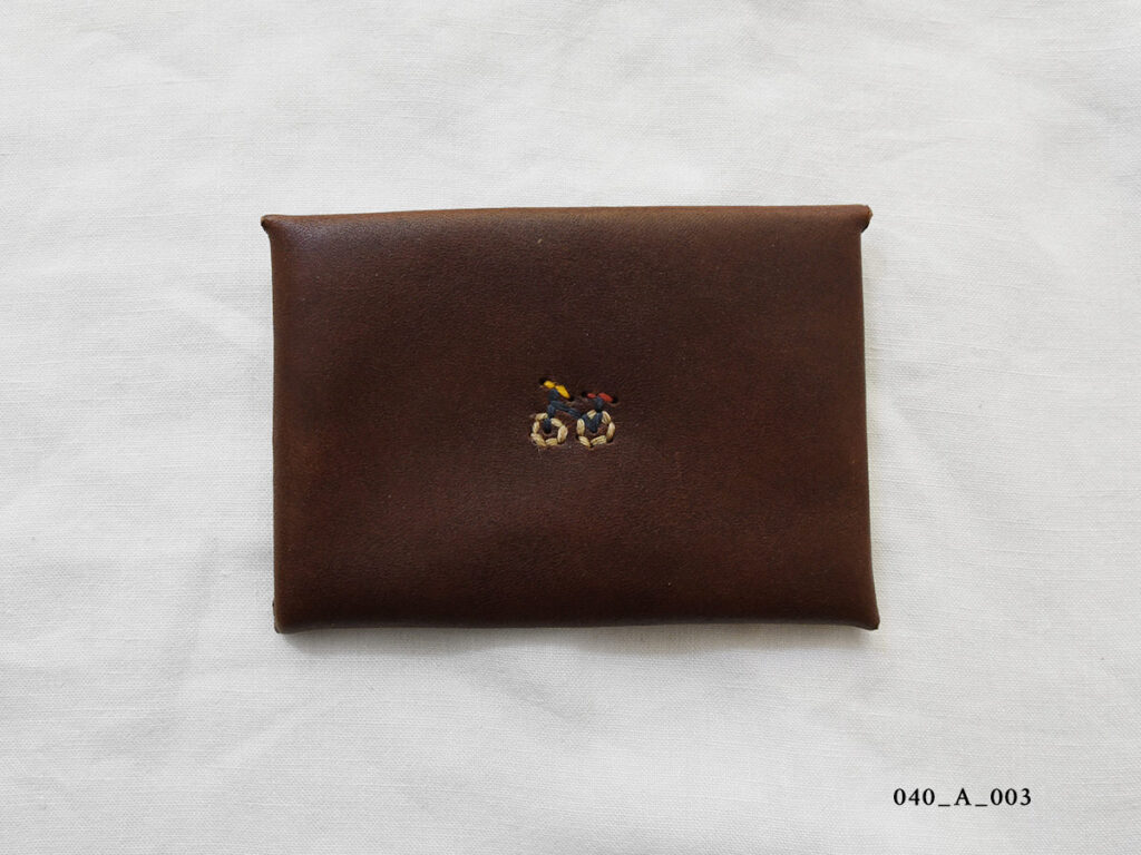 アンリの手によってひと針ひと針丁寧に刺繍されたカードケースは、それぞれが世界にたったひとつの特別な存在です。