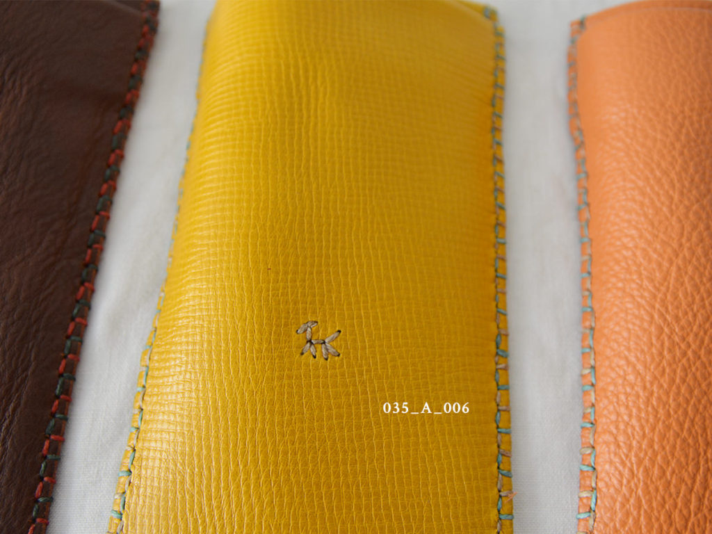 Henriの手によってひと針ひと針丁寧に刺繍されたGlass Caseは、それぞれが世界にたったひとつの特別な存在です。