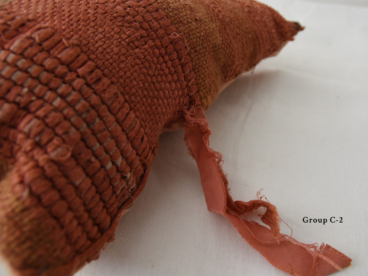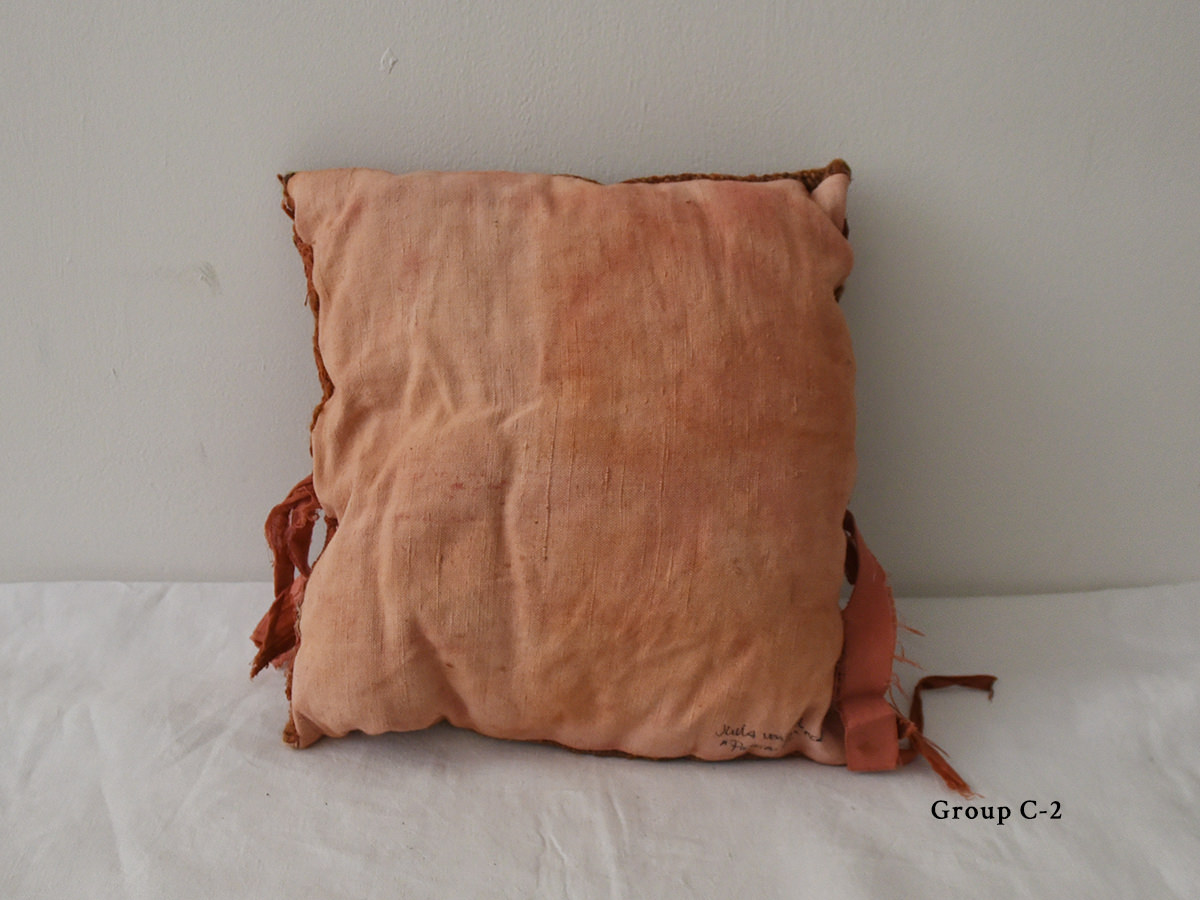 天然染料で染めたウールコットンのクッションです。(裏面は無地のリネン素材)