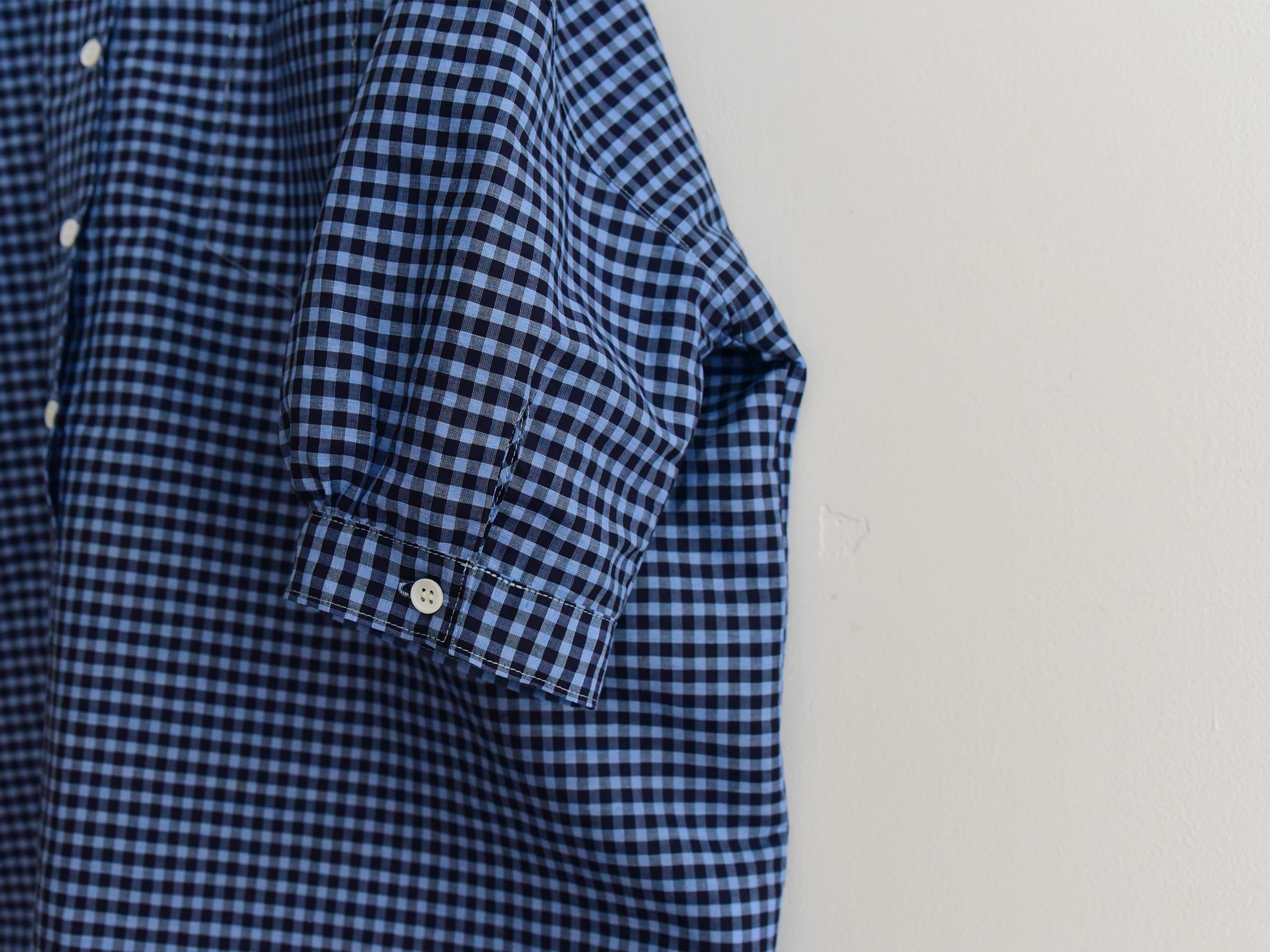 ドロップショルダーとボタン留めの袖が特徴です。