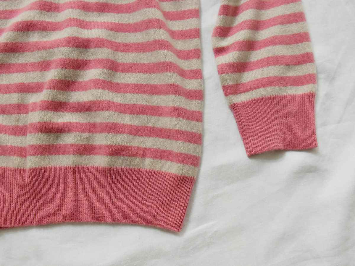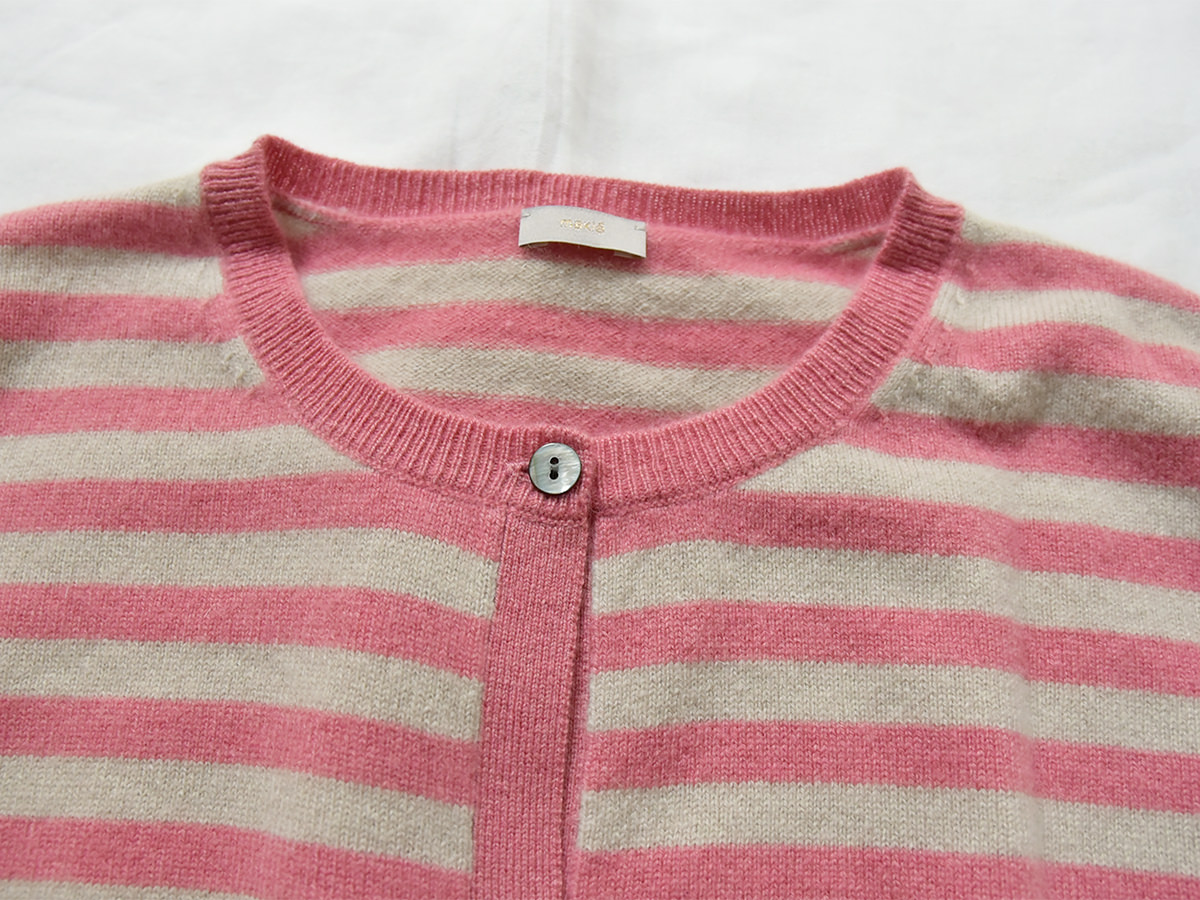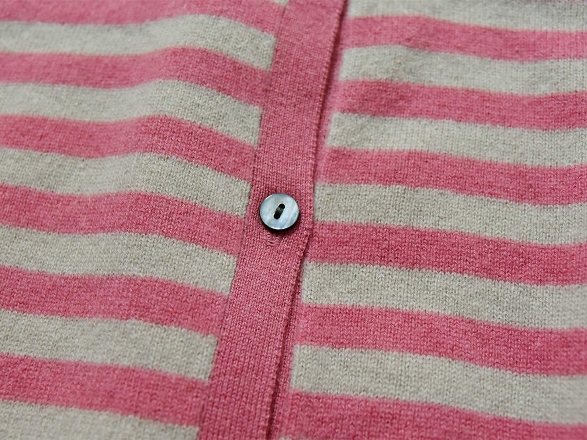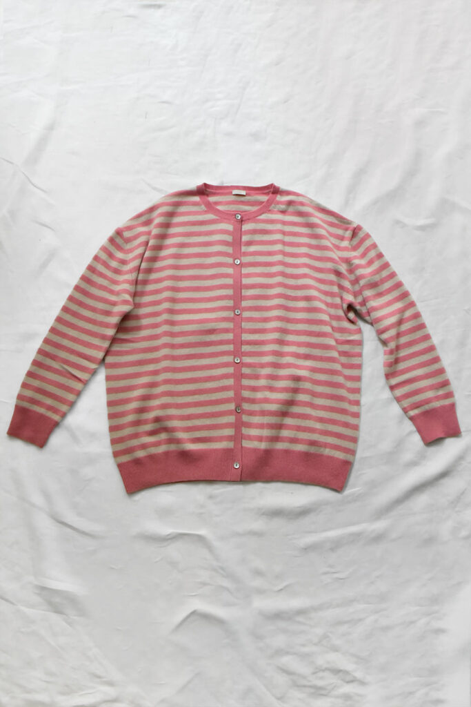 MAKIE / マキエ, Cashmere Cardigan – Dusty Pink x Lt. Beige Stripe