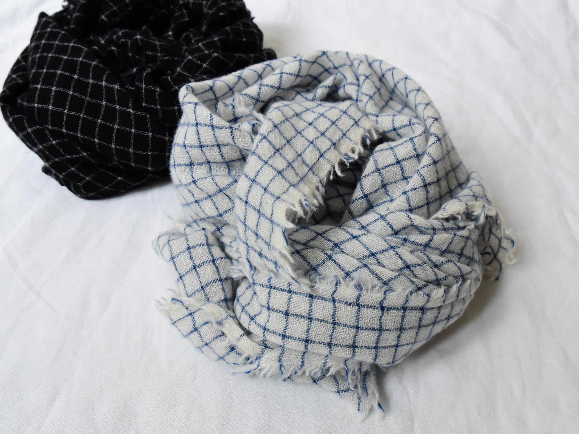 MAKIE / マキエ, Cashmere Scarf – Black and Off White – One Size, Black