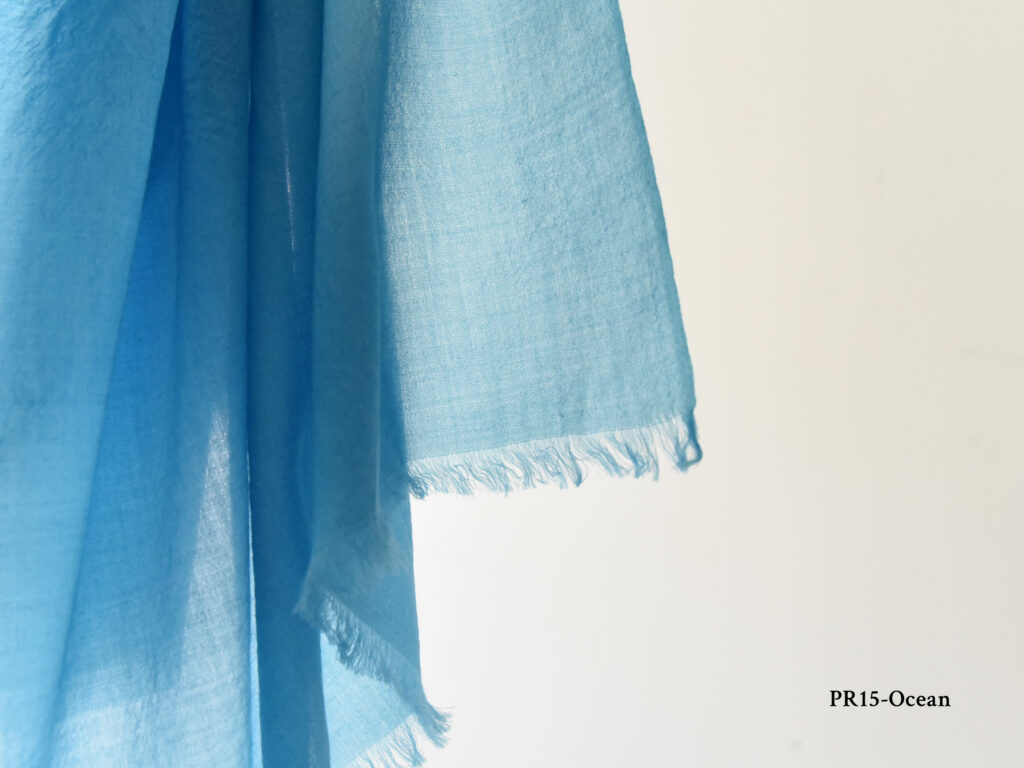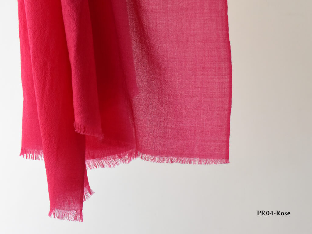 ※軽くて薄いカシミヤを使用し、プレウォッシュ加工でさらに柔らかな肌触りを実現。縁には短いフリンジが施され、大判サイズなので首に心地よく巻くのに最適です。