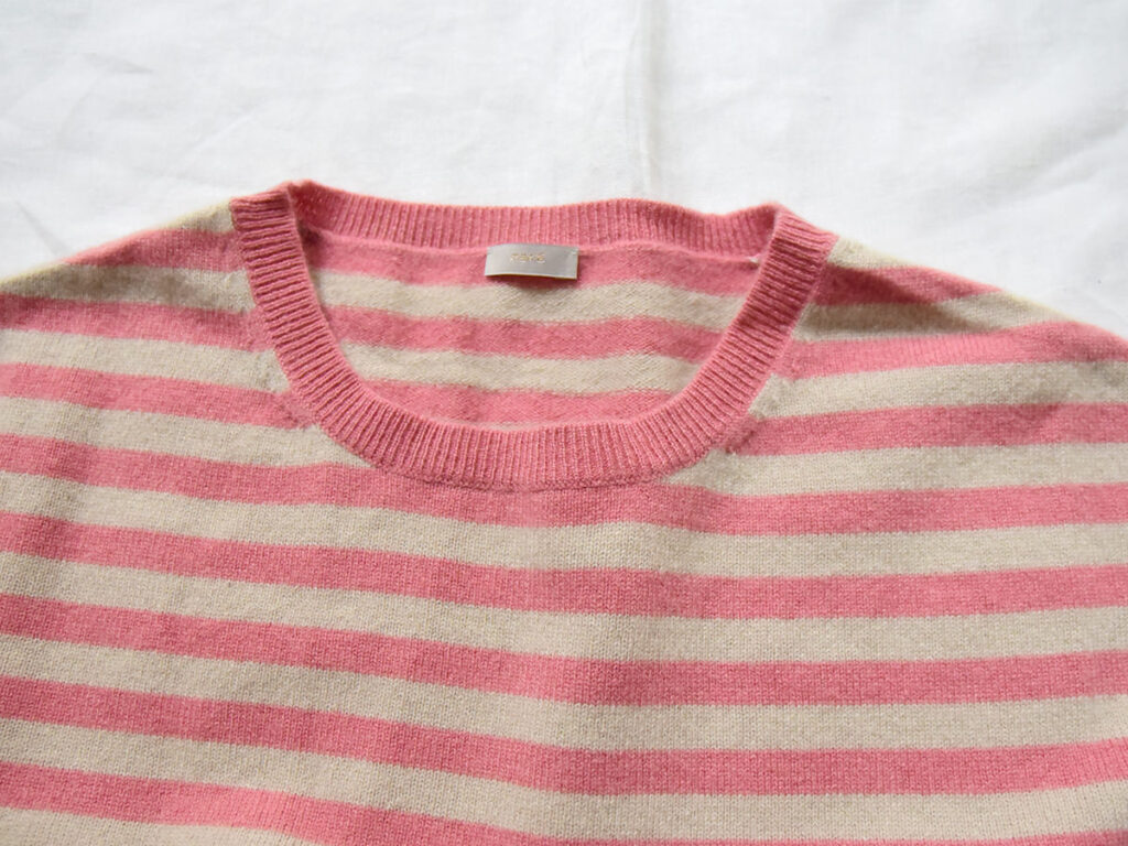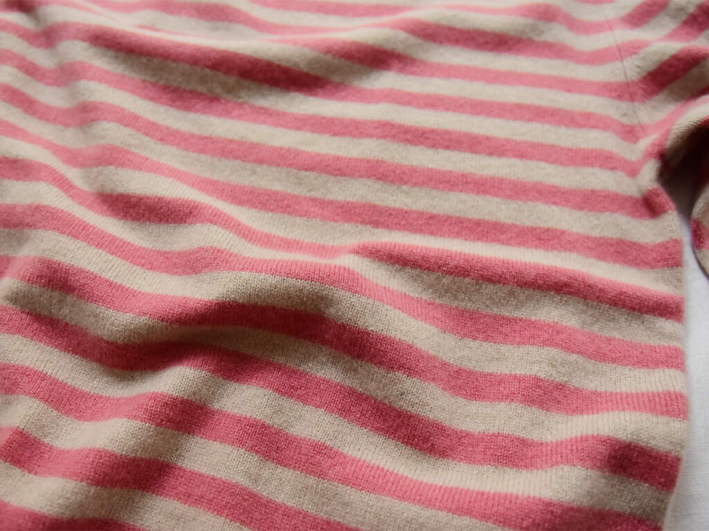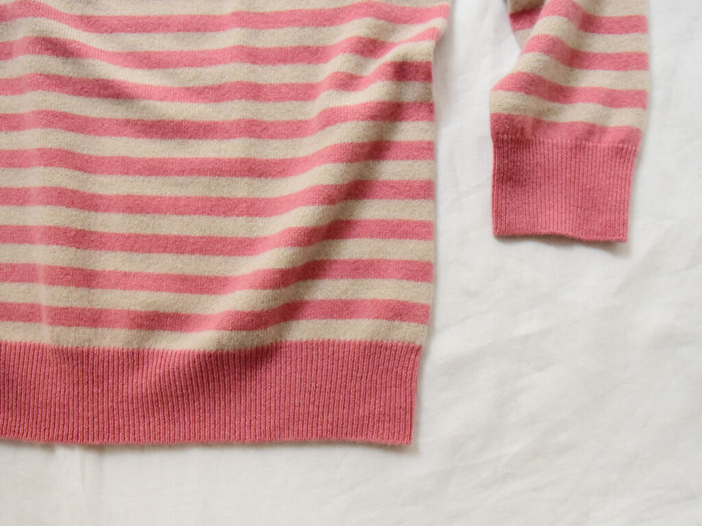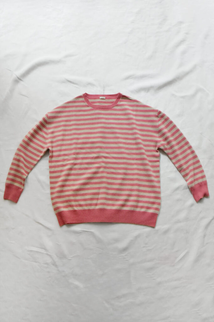 MAKIE / マキエ, Cashmere Round Neck Sweater – Dusty Pink x Lt. Beige Stripe