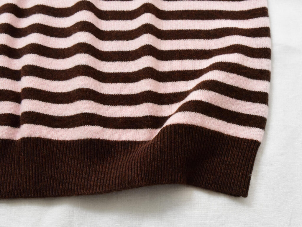 MAKIE / マキエ, Cashmere Vest – Pink x Brown Stripe