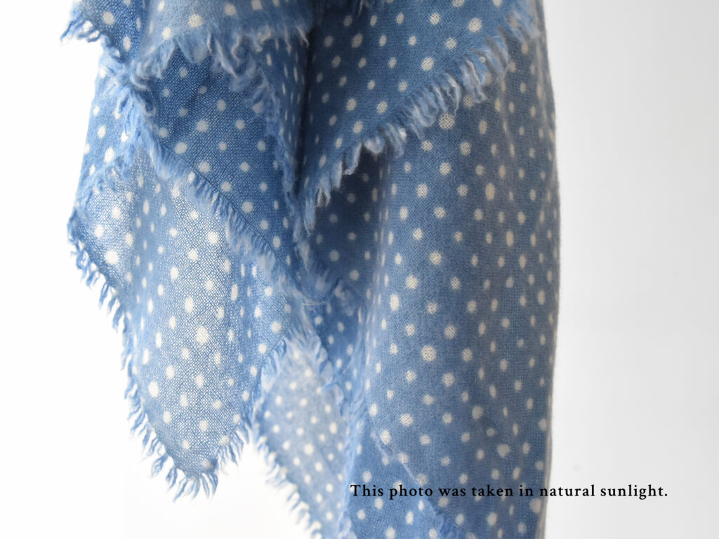 MAKIE / マキエ, Polka Dot Cashmere Square Scarf – Blue x Ivory