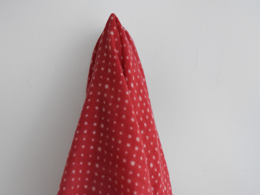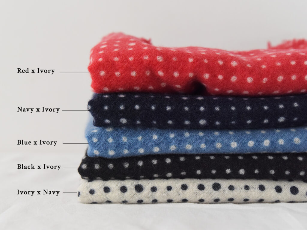 110cm×110cmの正方形で、繊細な小さなドット柄が特徴です。
