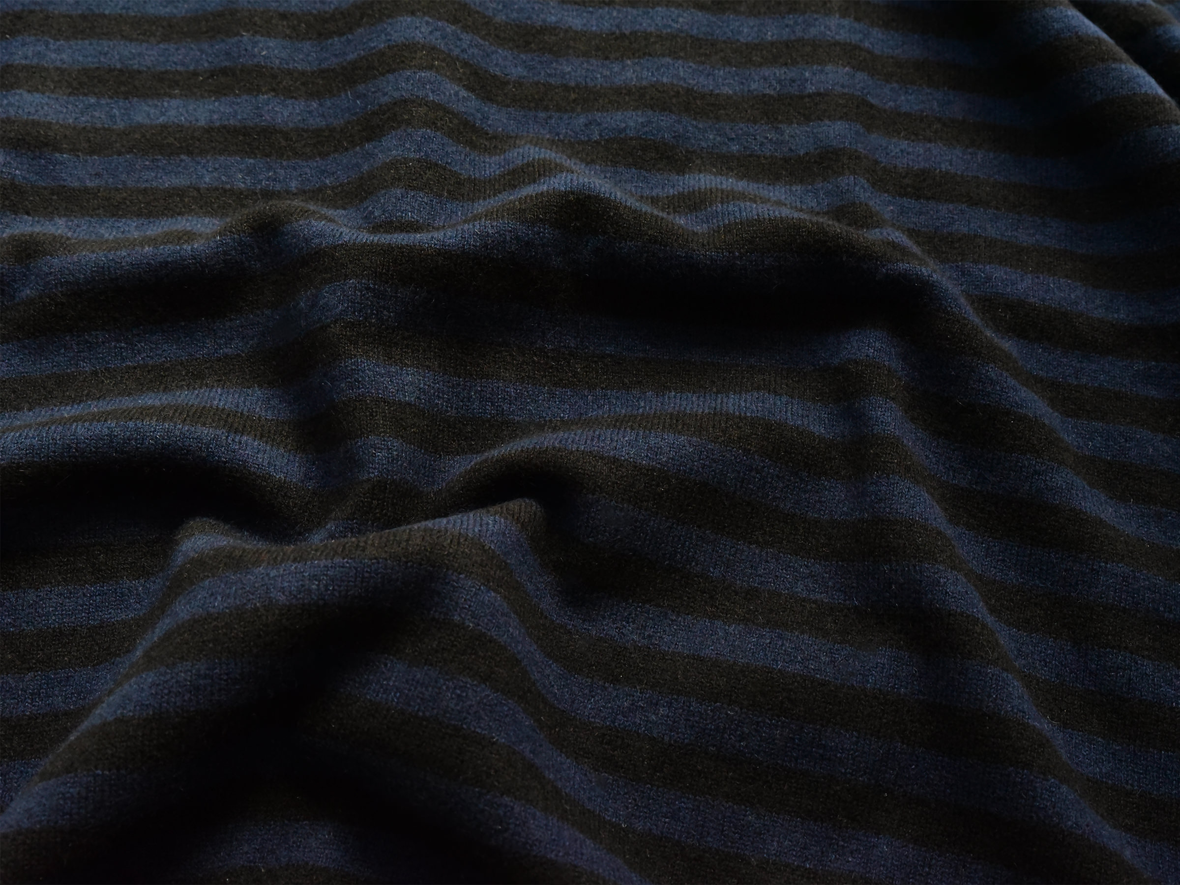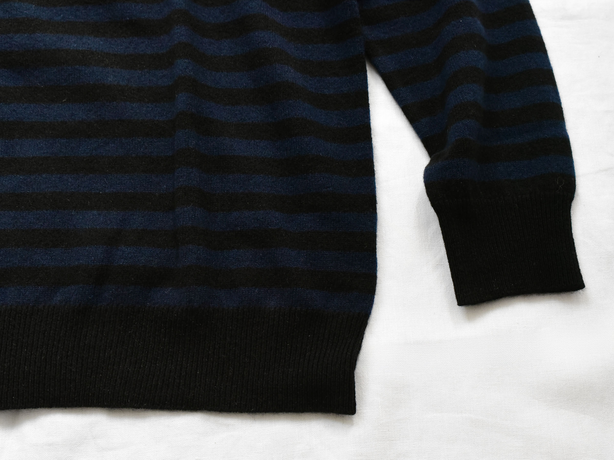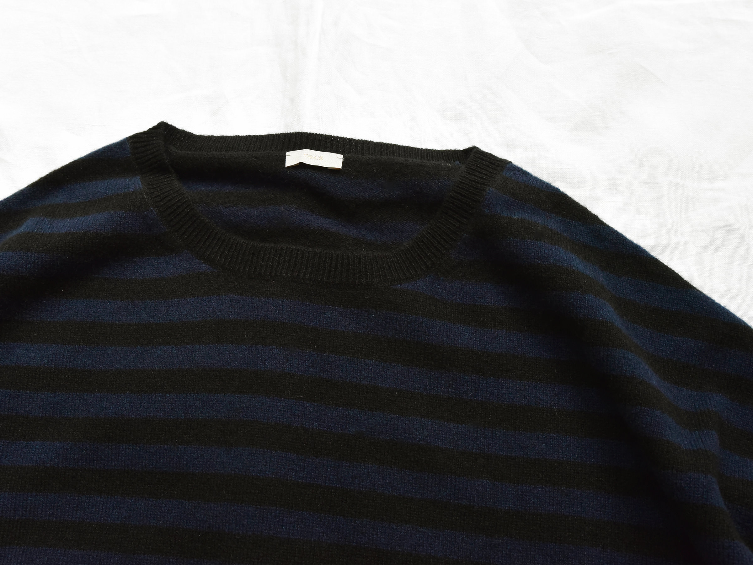 MAKIE / マキエ, Cashmere Round Neck Sweater – Navy x Black Stripe