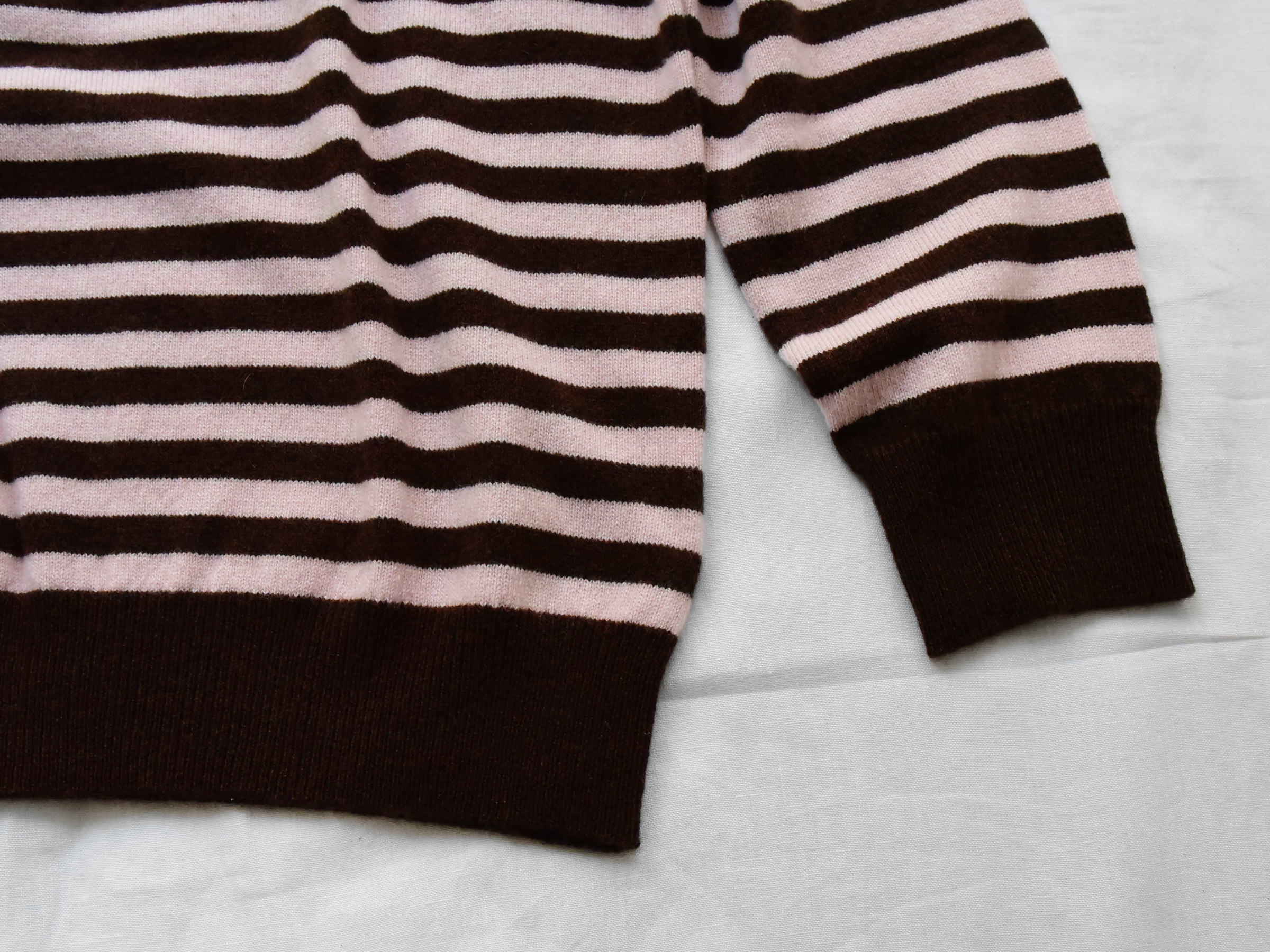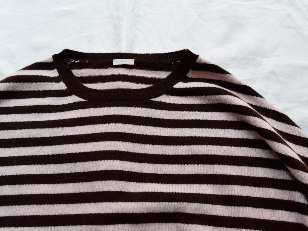 MAKIE / マキエ, Cashmere Round Neck Sweater – Pink x Brown Stripe