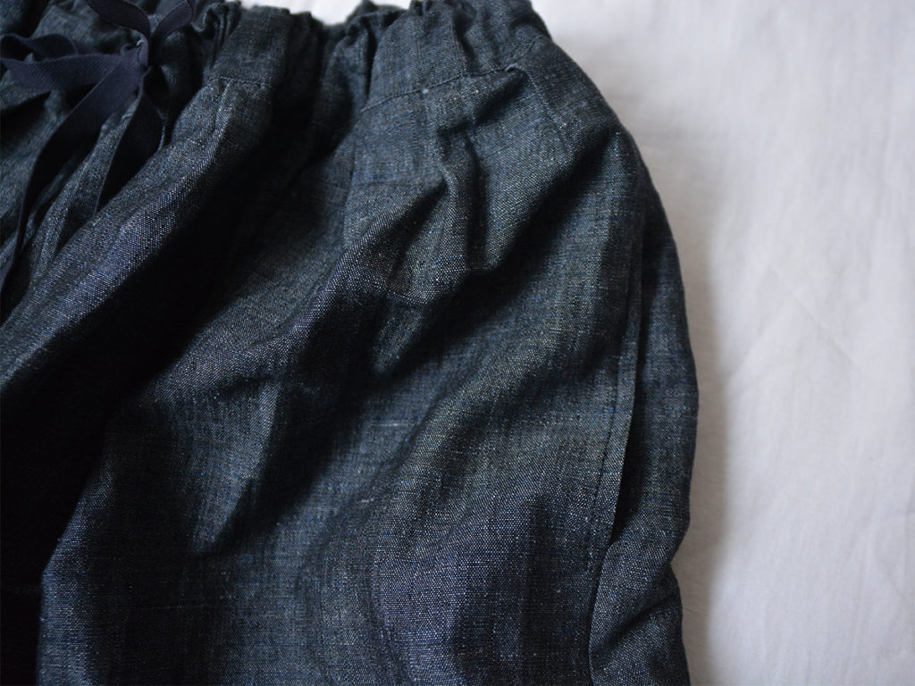 ※2サイドポケット、ウエストはリボン仕様で調整可能
