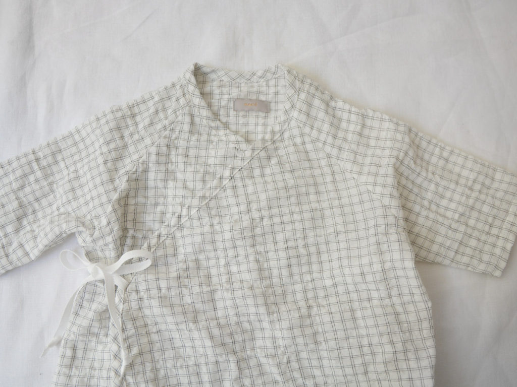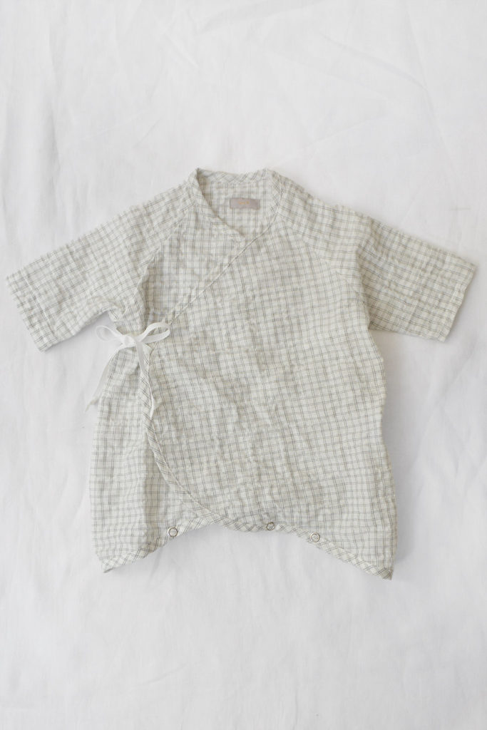 脱ぎ着させやすいキモノスタイル、股部分はおむつ替えのしやすいスナップ仕様です。