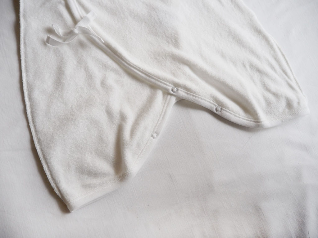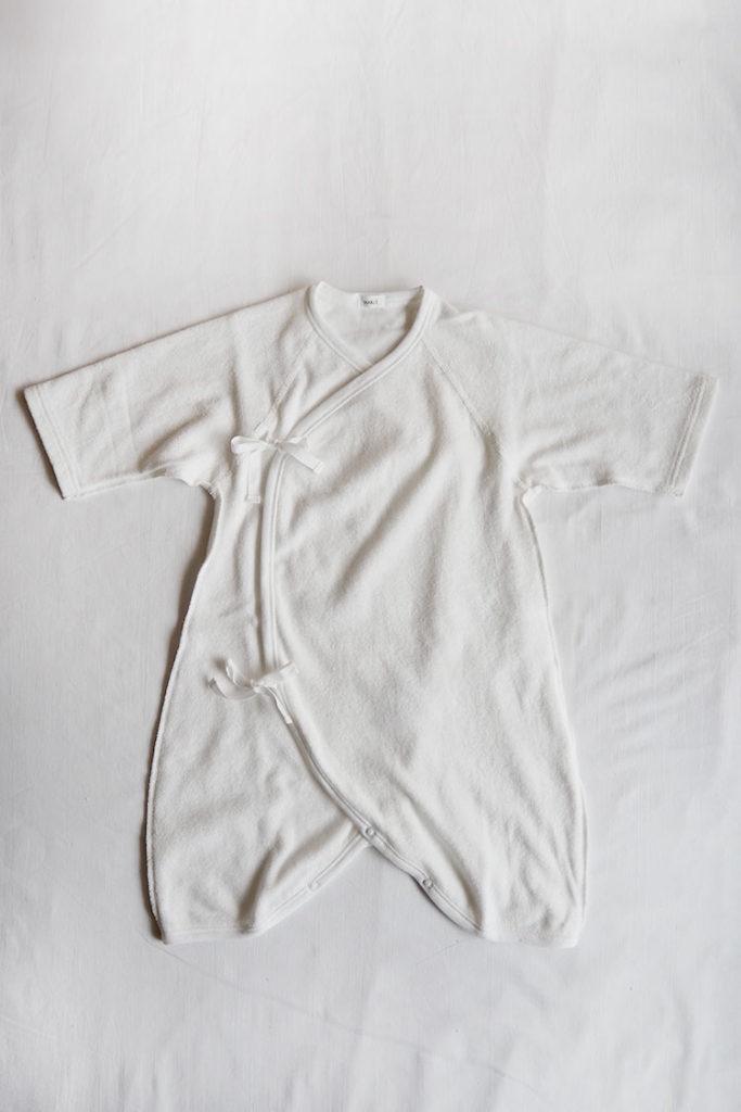 合わせタイプの肌着は新生児にはとても着させやすい仕様になっています。