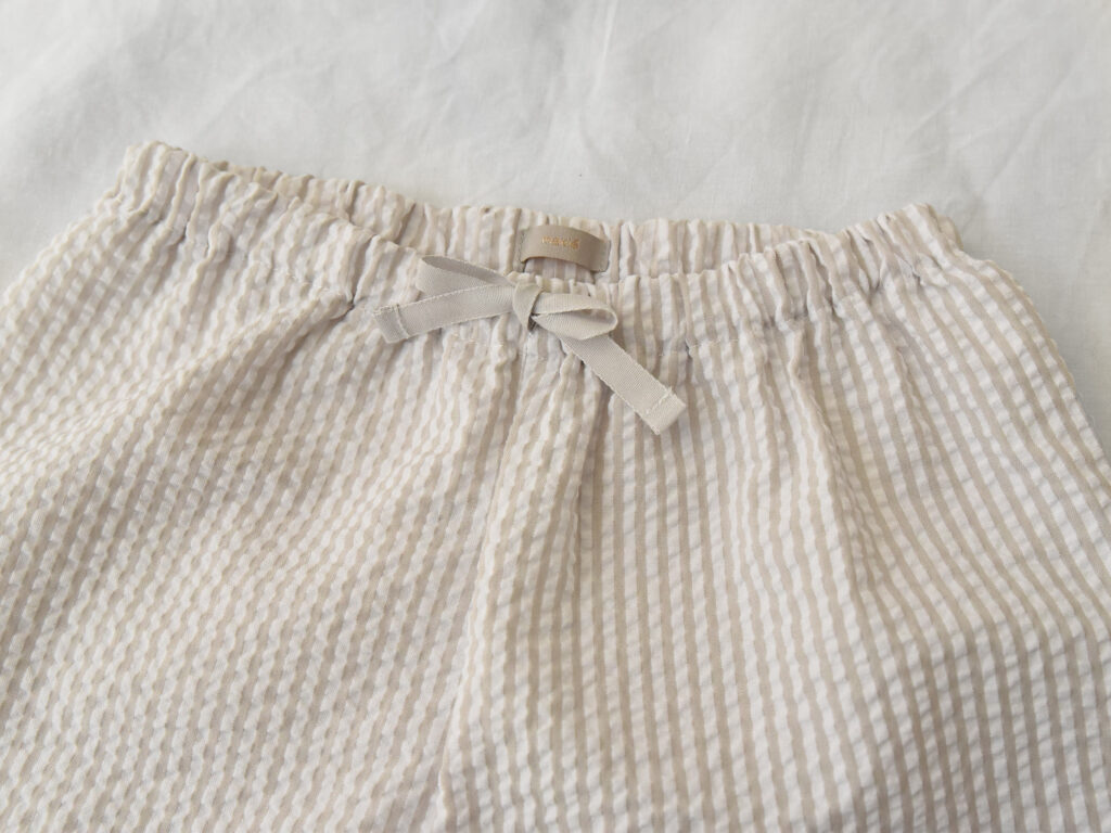 暖かい季節に快適に着用できるようデザインされた、軽量ストライプ柄ショートパンツ。
