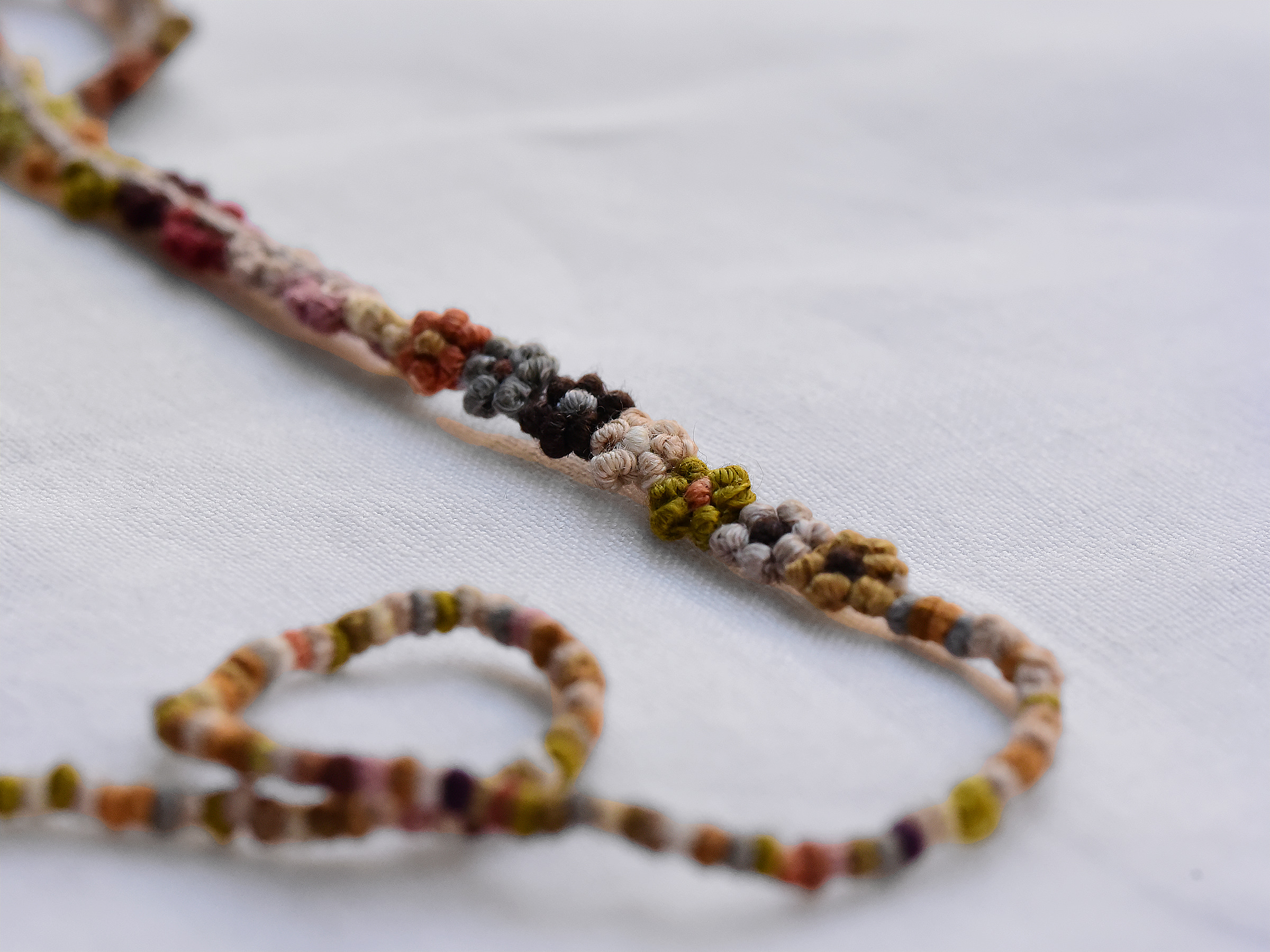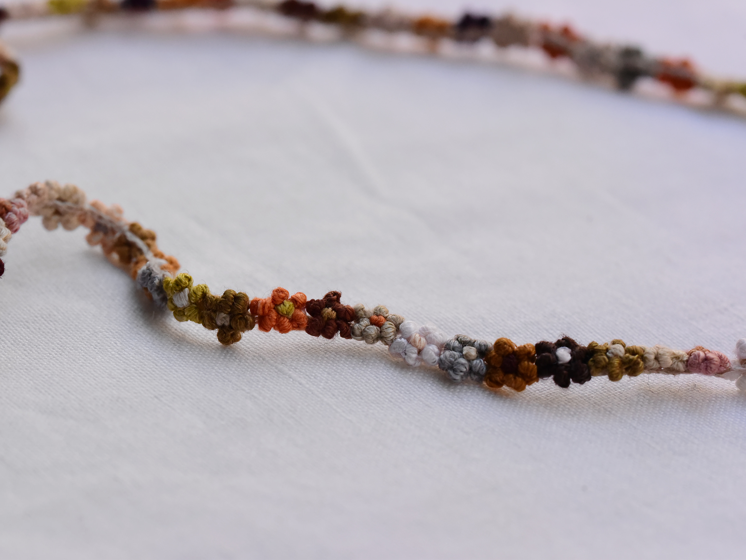 独特の感性でモチーフ編みのネックレスやスカーフ、バッグなどを展開しています。