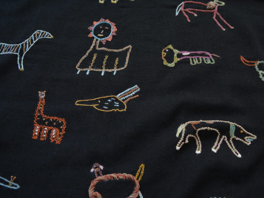 動物たちが全面に刺繍されています。