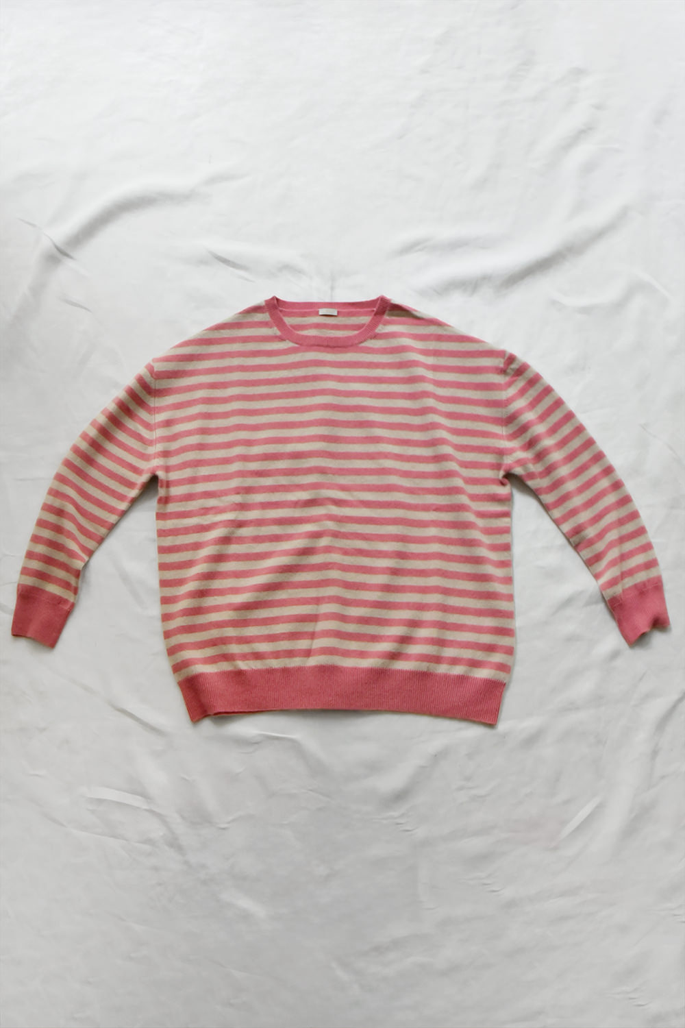 MAKIE / マキエ, Cashmere Round Neck Sweater – Pink x Brown Stripe